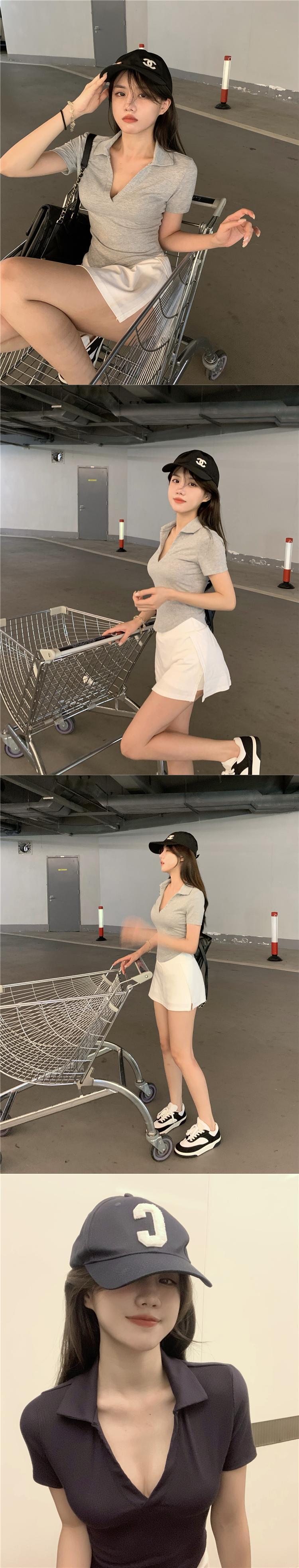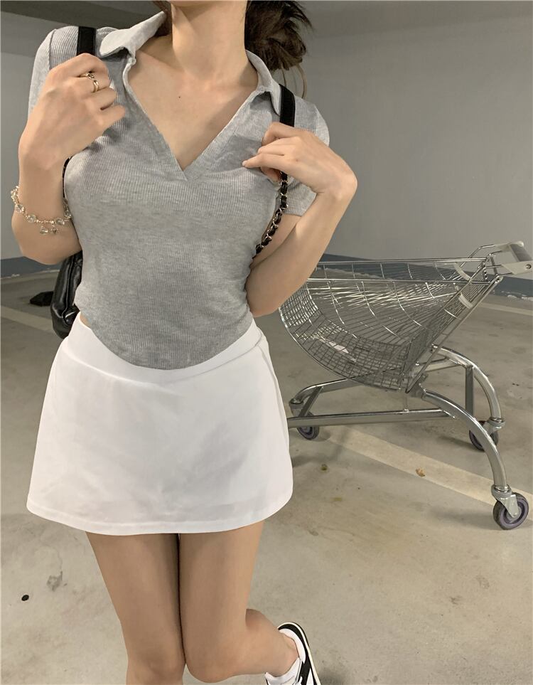 ショートカラーTシャツ サマースタンダードトップス レトロ 夏物 ピュア ガールズファッション24402334572