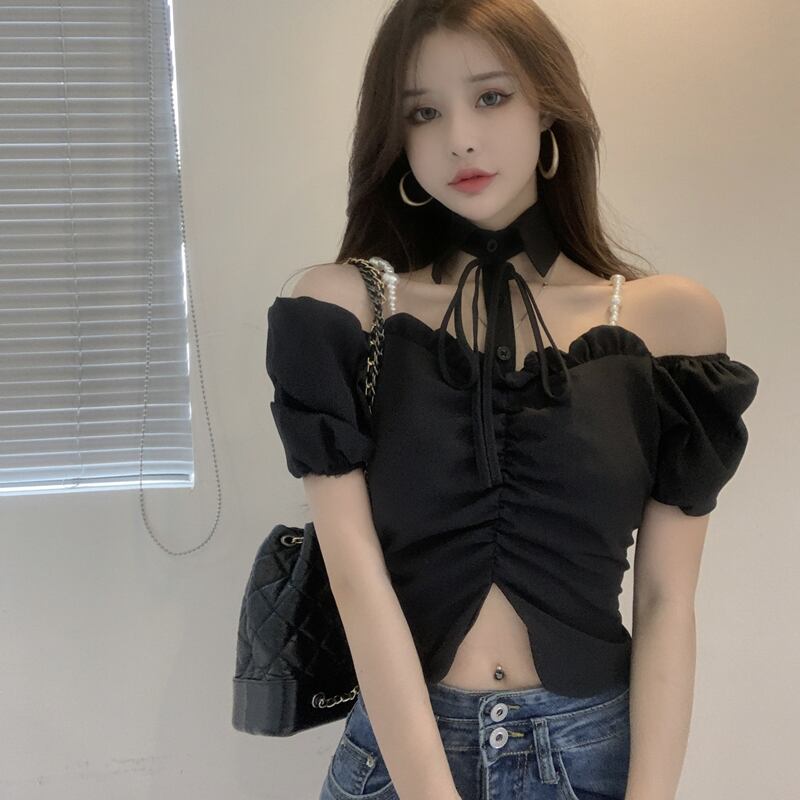 パールチェーン ショートブラウス トップス サマーシャツ 夏物 真珠 ガールズファッション93551689141