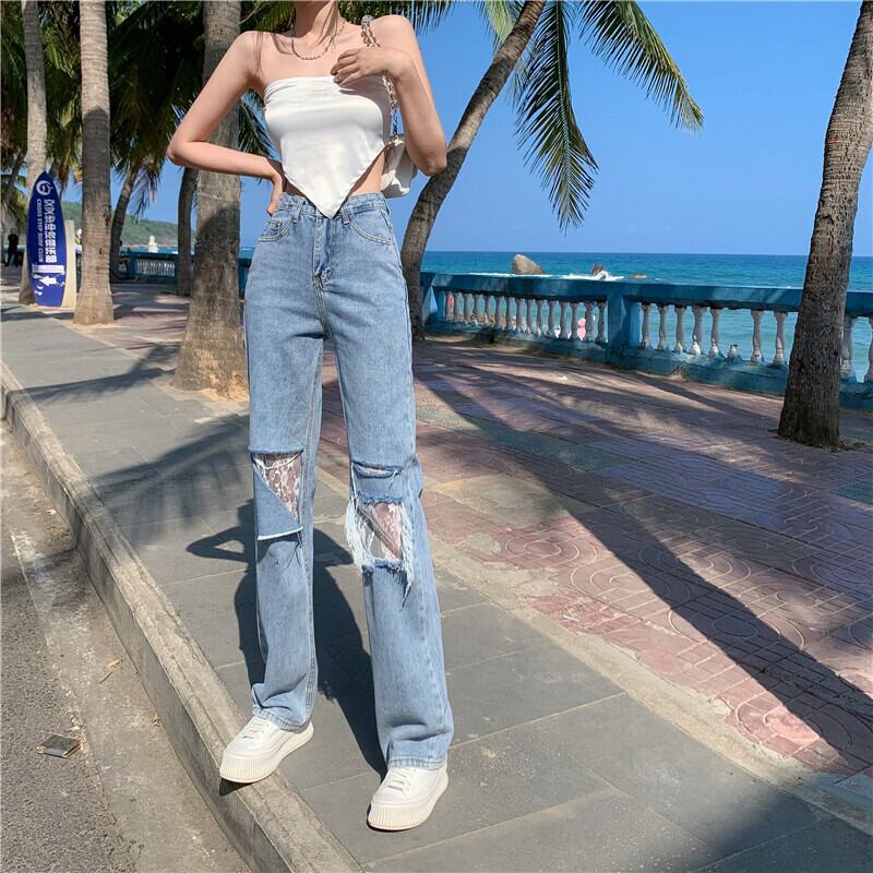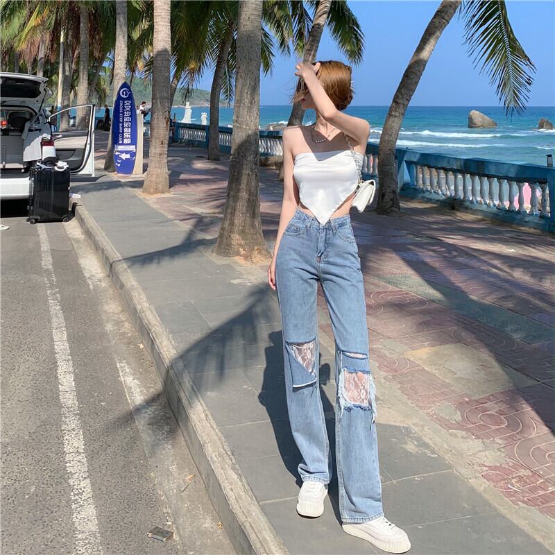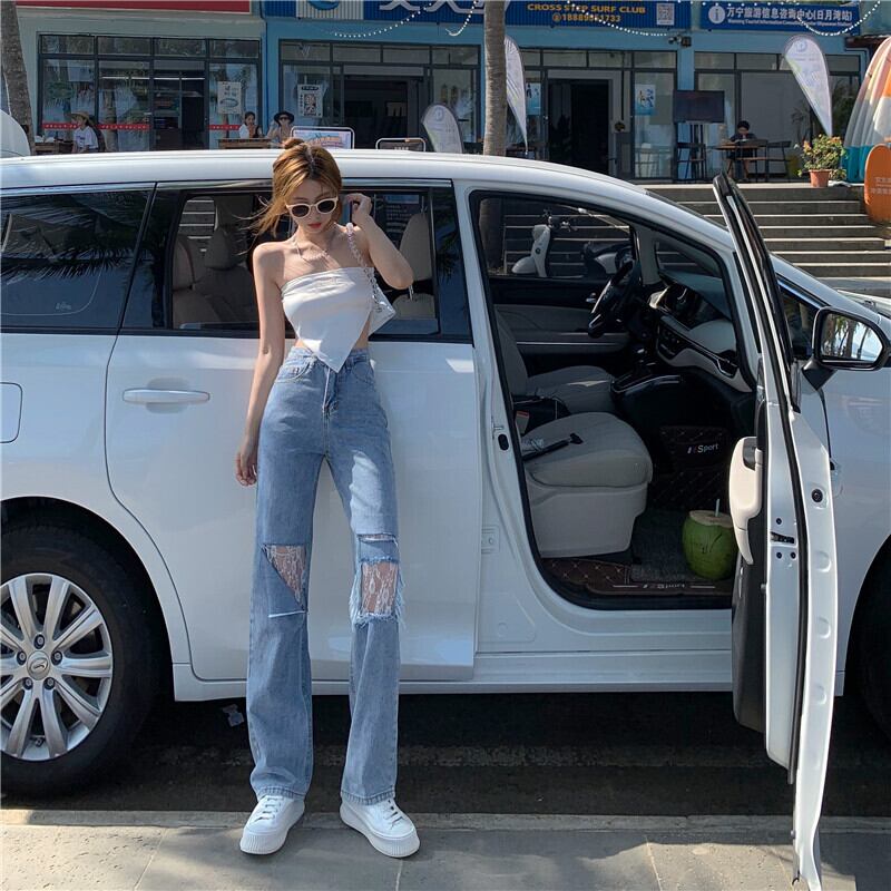 ハイウェストウェストジーンズ レディースサマーレースパンツ ルーズ 夏物 ガールズファッション83311593567