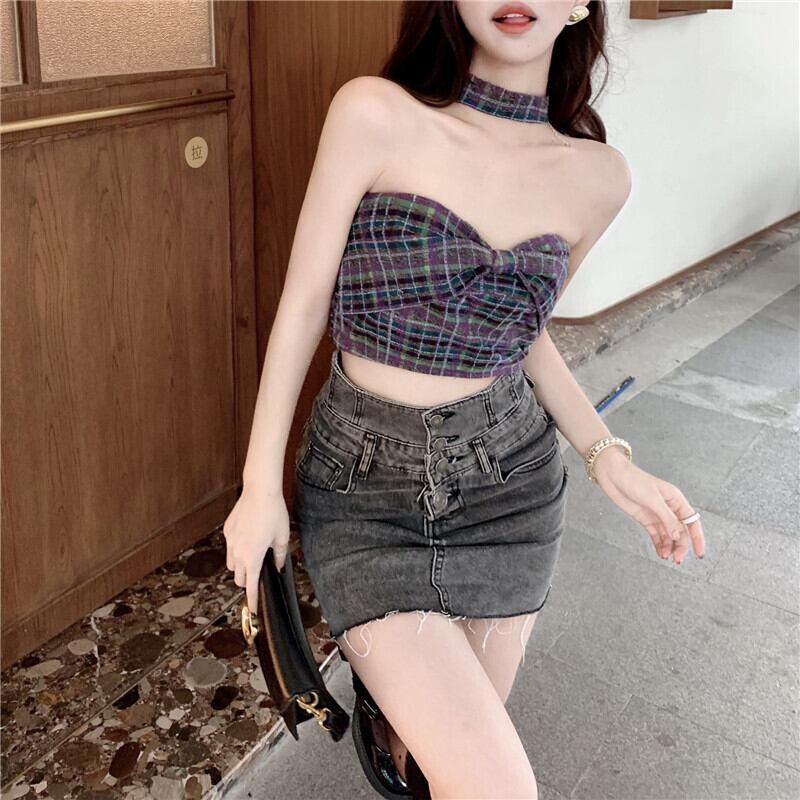 格子柄トップス サマーショート薄手 リボン 夏物 ガールズファッション34627934590