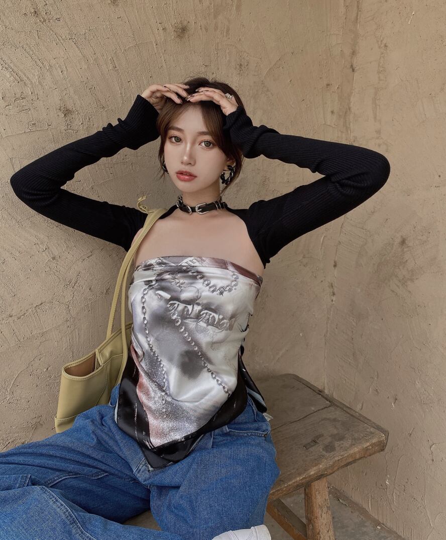 色:手描きの四角いスカーフ,セーター