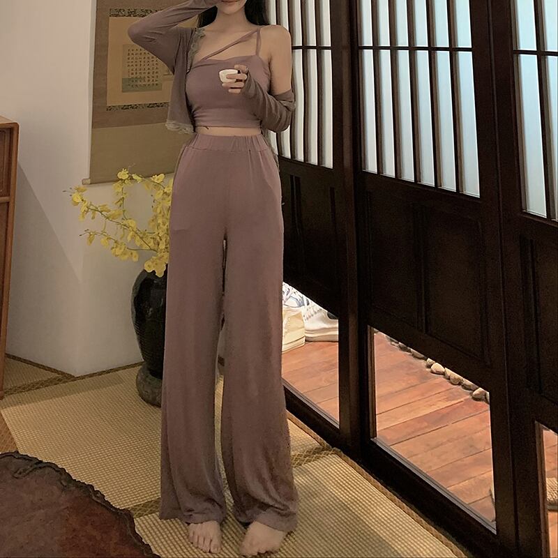 オータムスタイルレースカーディガンストレッチウェストカジュアルパンツ エラスティック 伸縮 秋物 ステッチ ガールズファッション71562336541