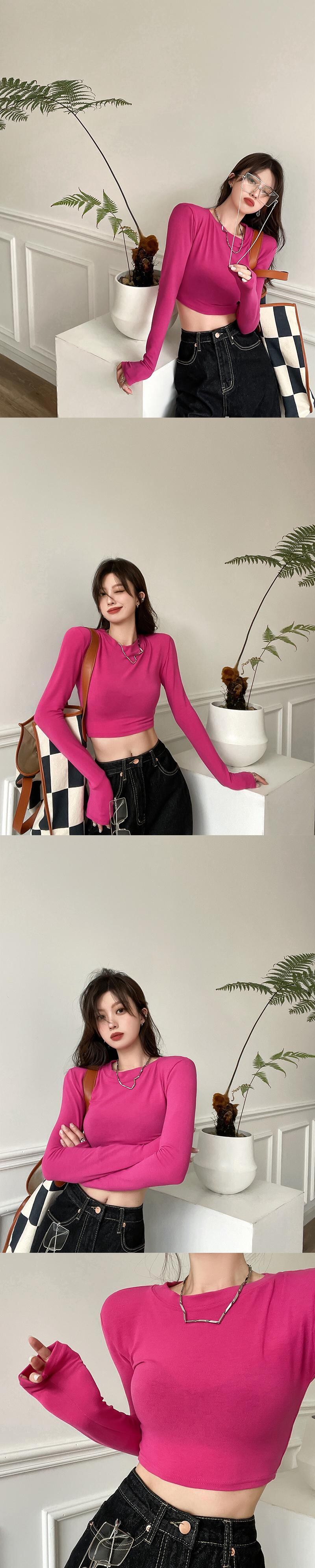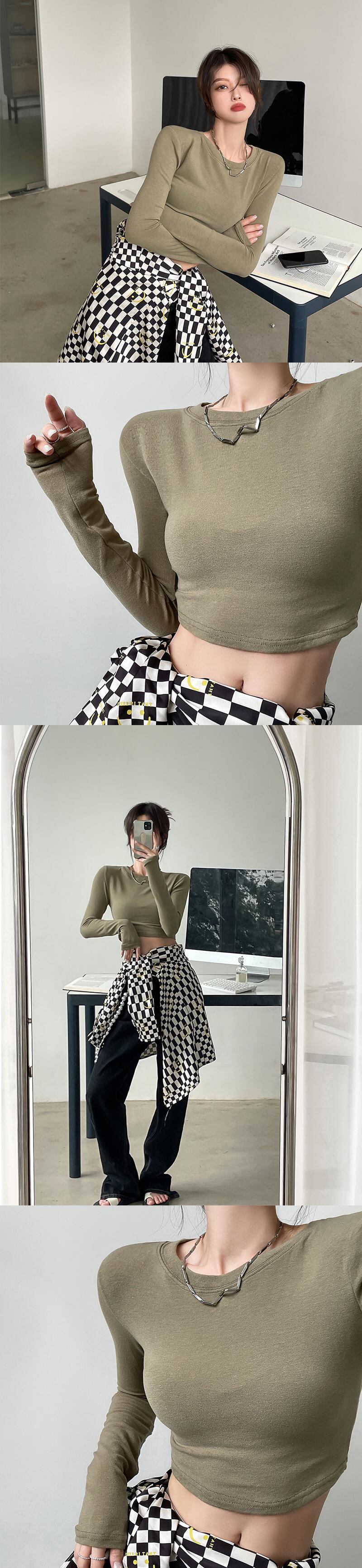 Tシャツ シャツ オータムハイウェストショート薄手カラートップス ロング 秋物 ピュア ガールズファッション50699104601