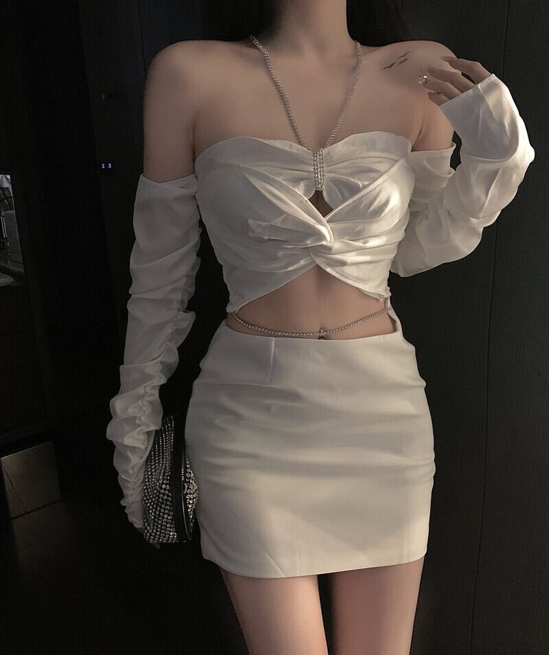 チェーン ホルターショートジャケット スカート オータム ストリート 秋物 ガールズファッション96020495819