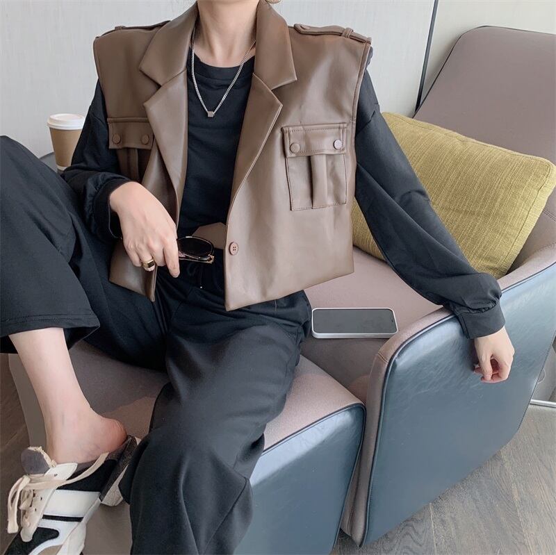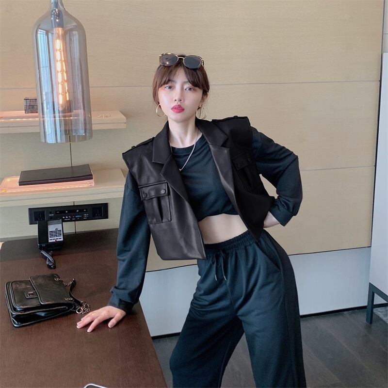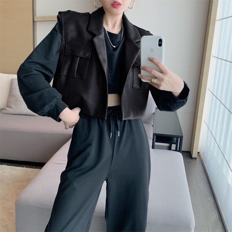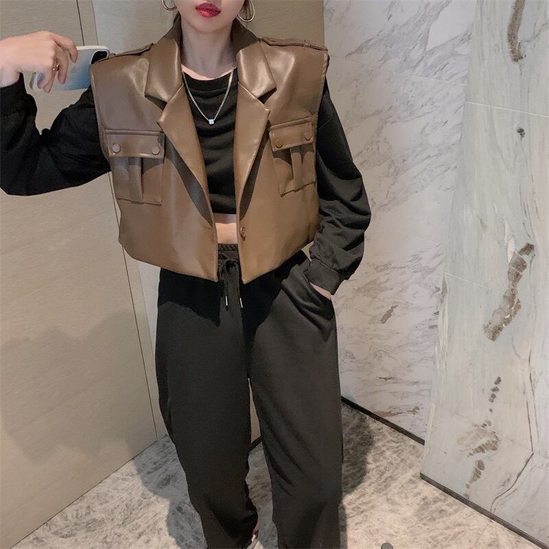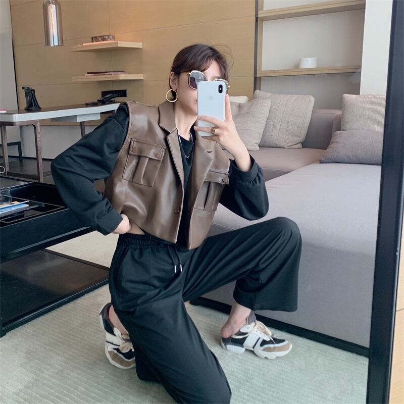 オータムショートレザールーズセーター ハイウェスト ロング 秋物 ガールズファッション37362347069