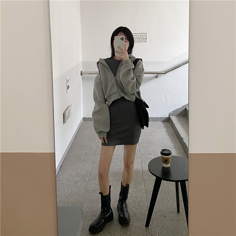 色:ダークグレーのドレス,ライトグレーのジッパージャケット
