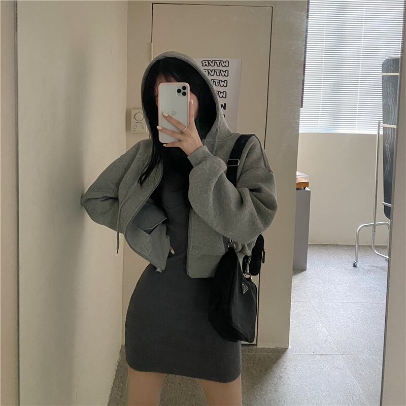 グレーフードジッパーショートコート ドレス スカート オータム 大人ガーリー スウィート キュート カジュアル 秋物 ガールズファッション41930602234