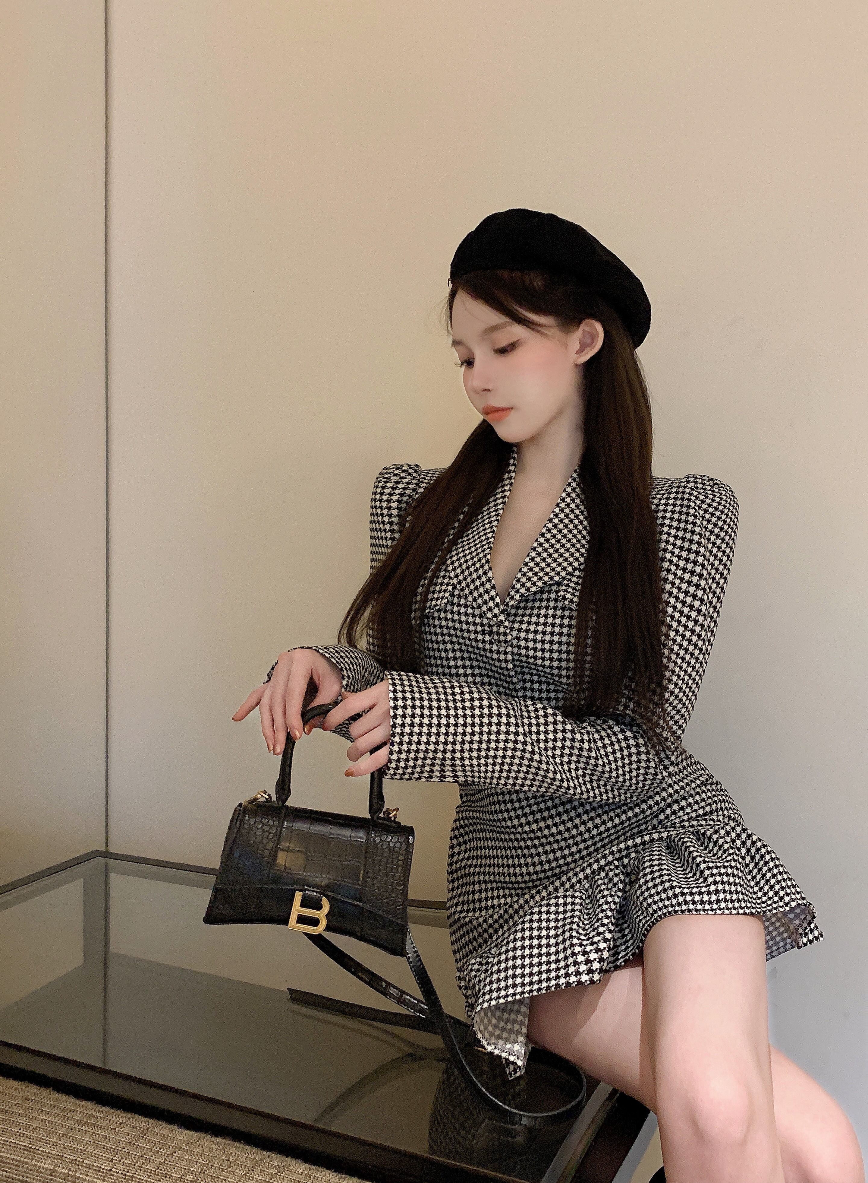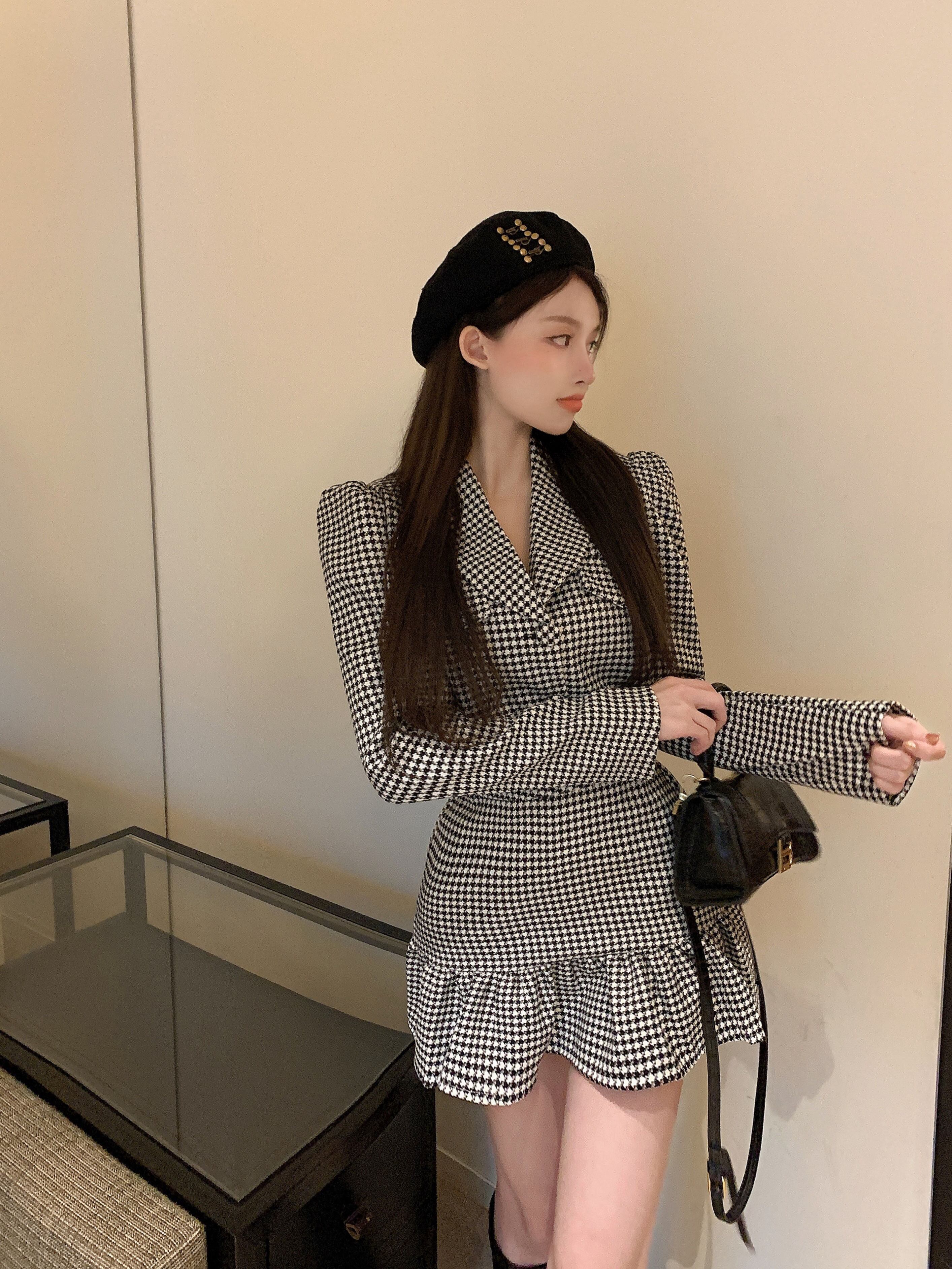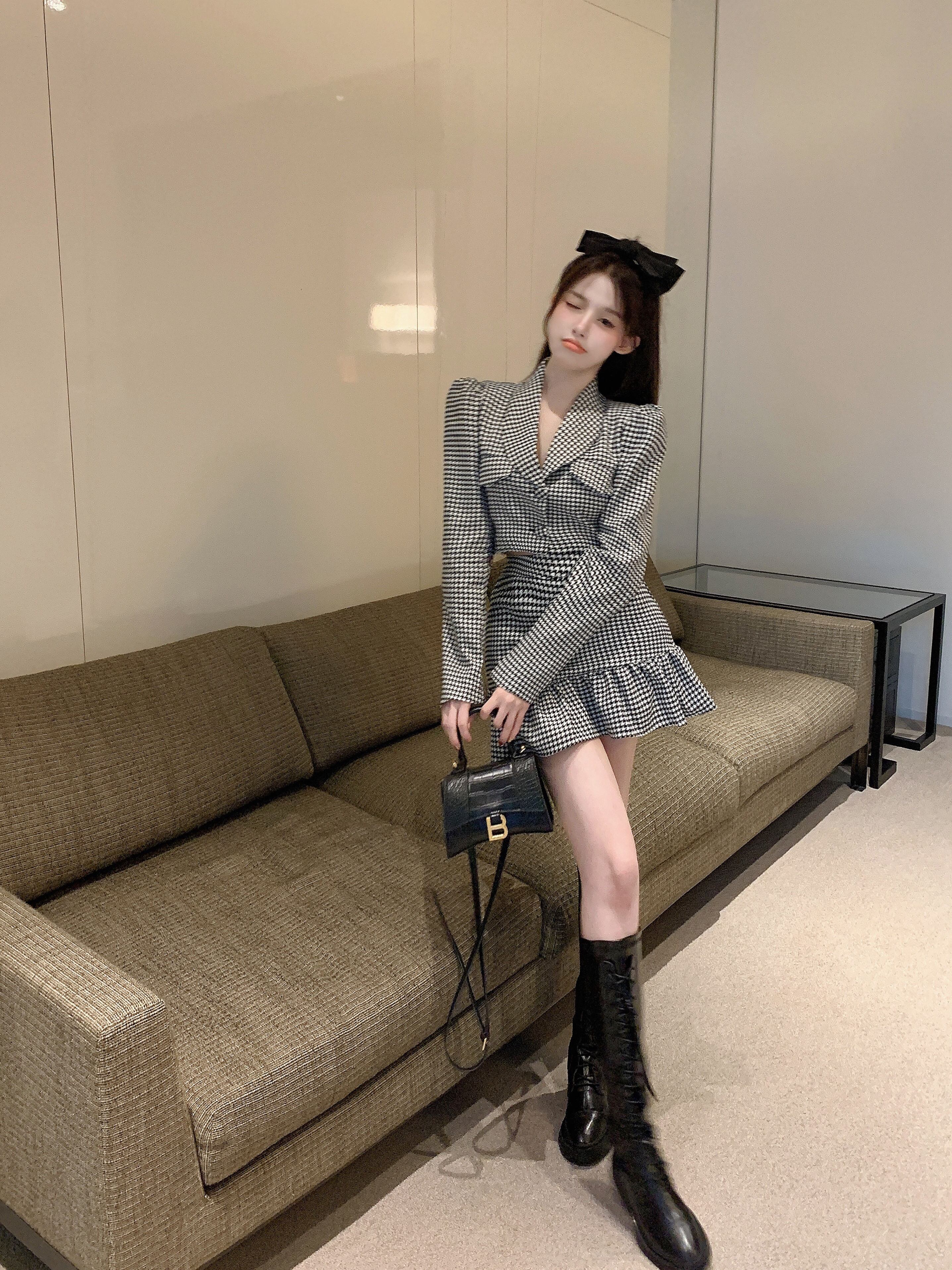 色:チェック柄トップ,チェック柄スカート