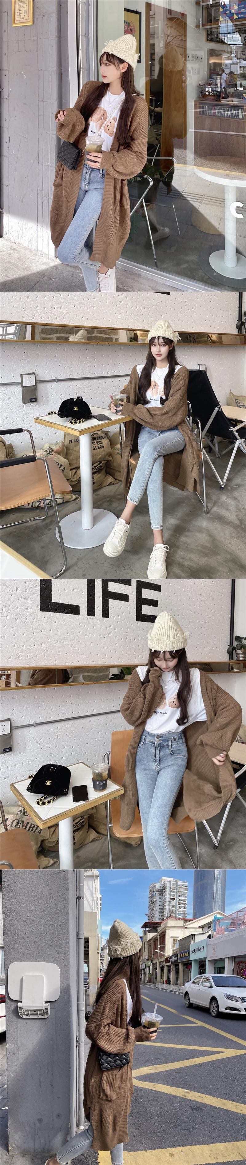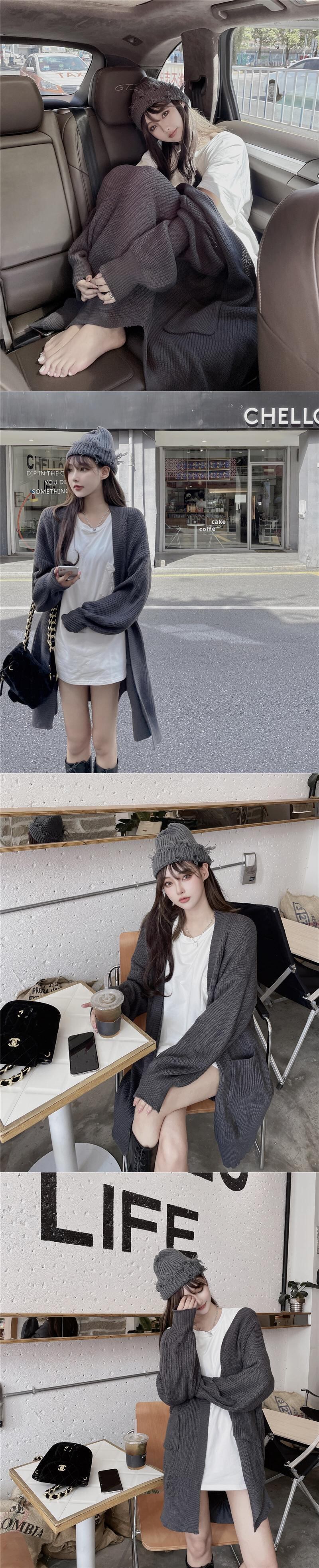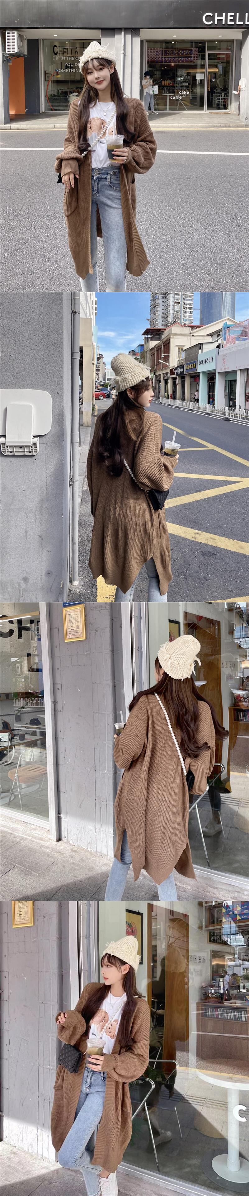 スタンダードルーズセーター カーディガンカジュアルジャケット ロング レトロ ガールズファッション9899500518