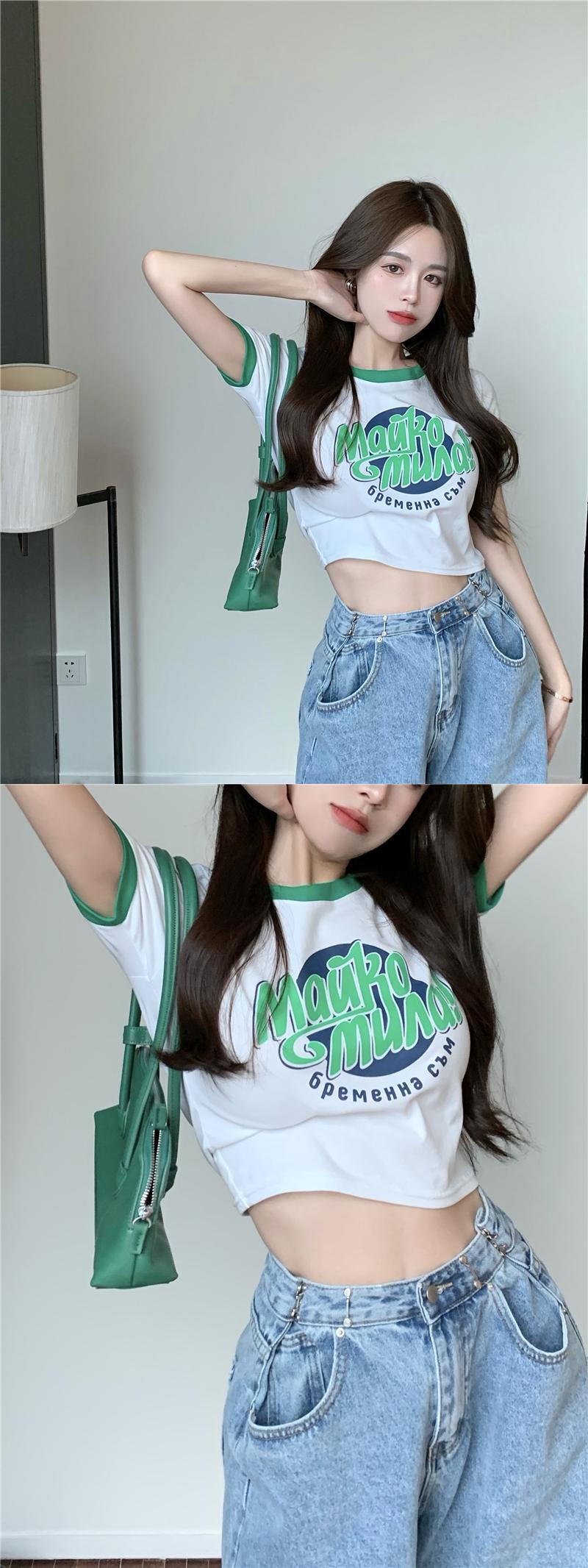 サマースタイルショートスリムTシャツ プルオーバー 夏物 ガールズファッション5701826258