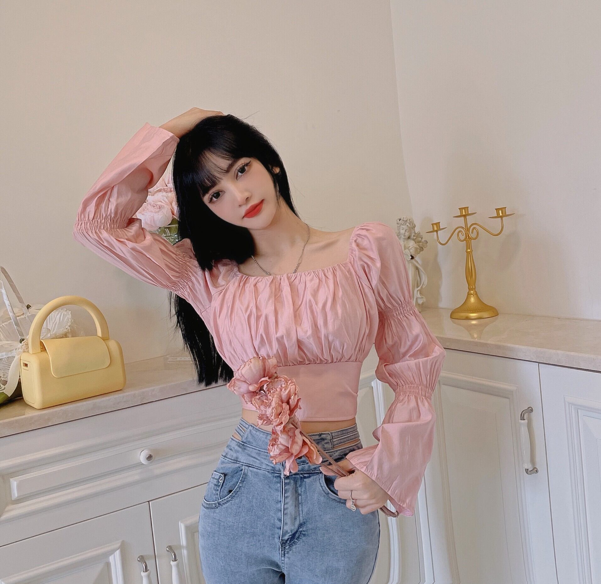 スタンダードホルターシャツ オータムショートトップス ロング レトロ 大人ガーリー スウィート キュート カジュアル 秋物 ガールズファッション27928437424