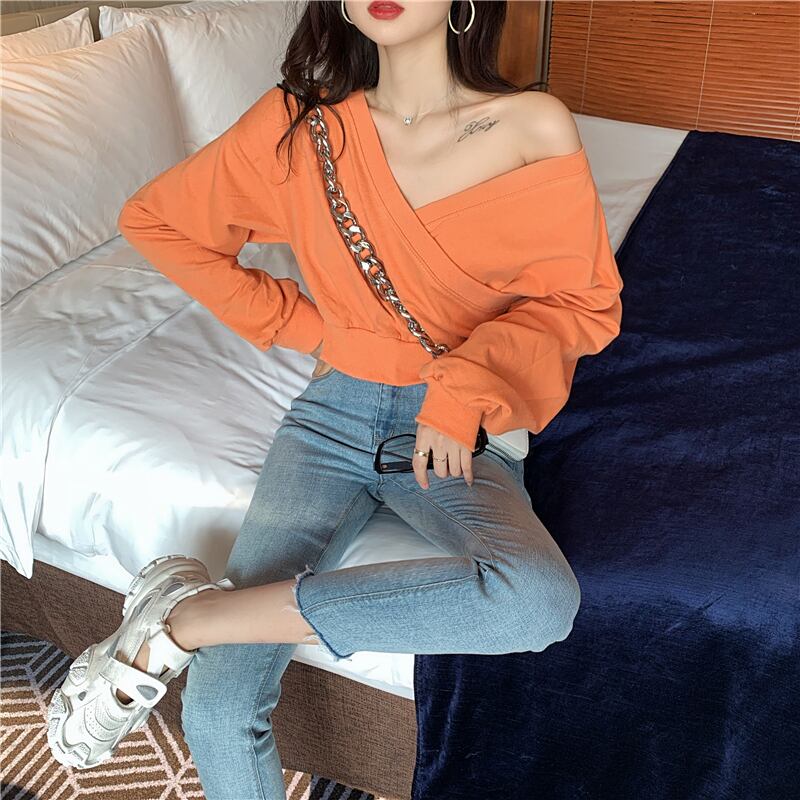オータムクロスVネックショートセーター スタイルルーズプルオーバー トップス 秋物 ガールズファッション61906160095
