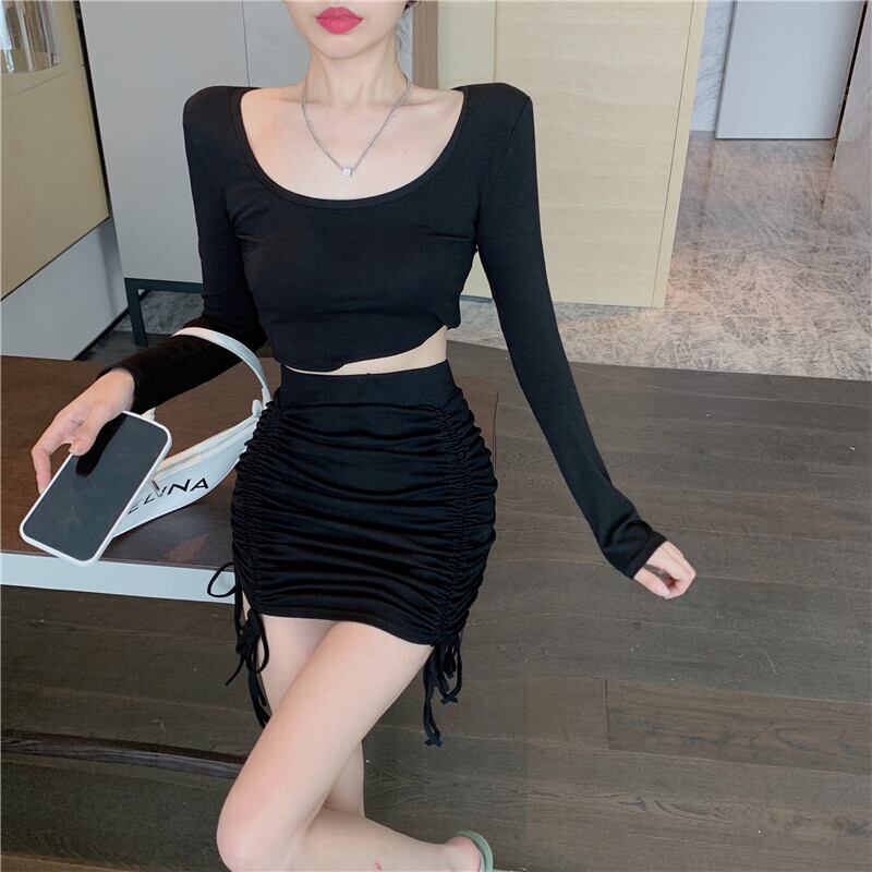 ショートトップス ハイウェストギャザースカート オータム ロング ストリート 秋物 ガールズファッション85655688392