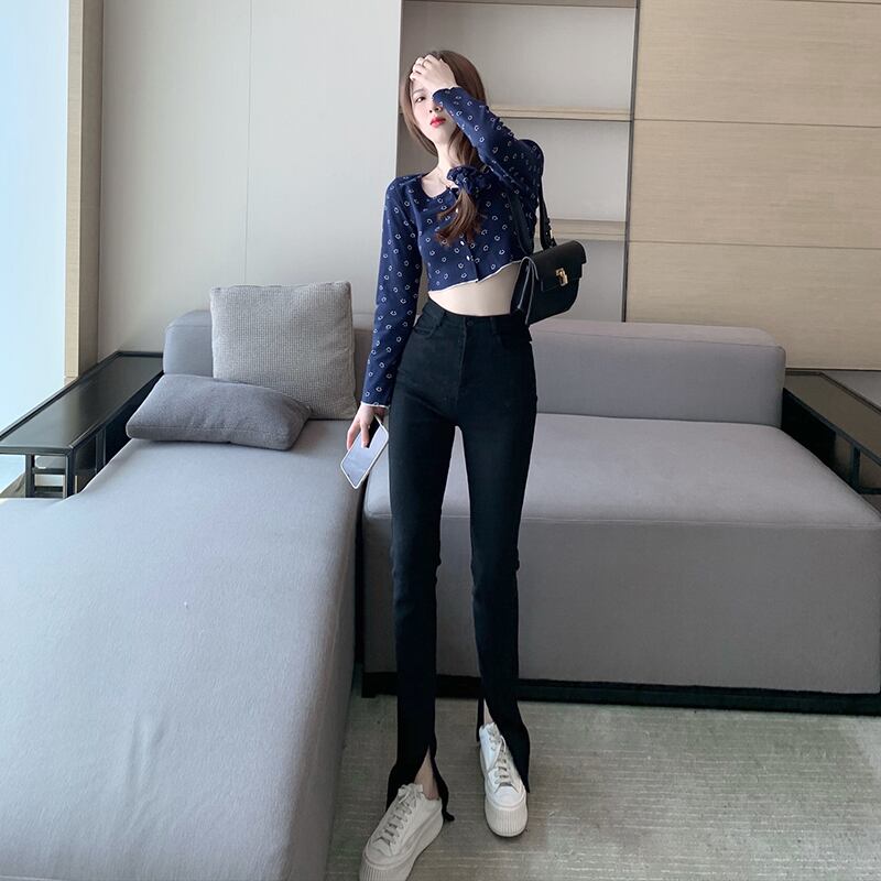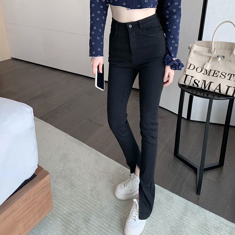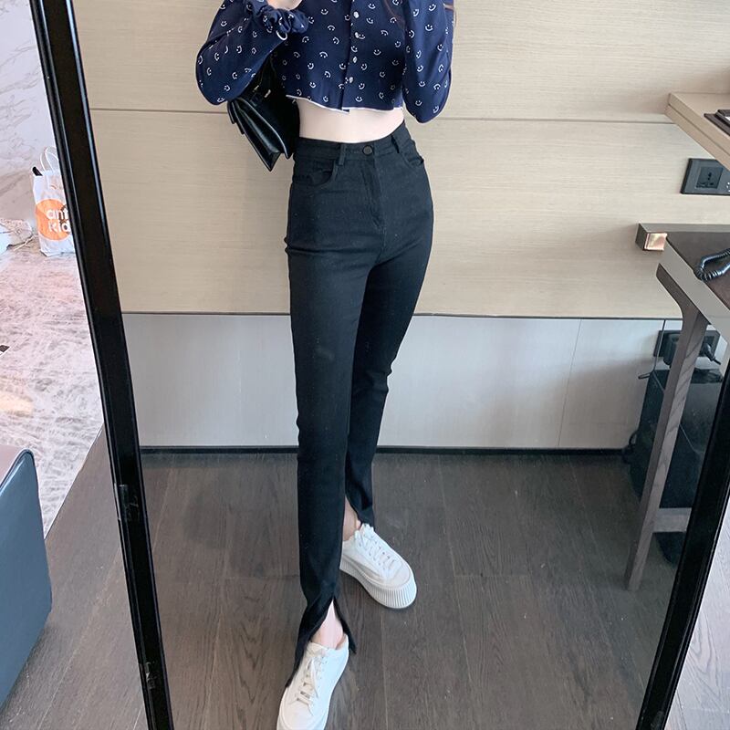 ブラックスタンダードハイウェストウェストパンツ スリム レトロ ガールズファッション56322186603
