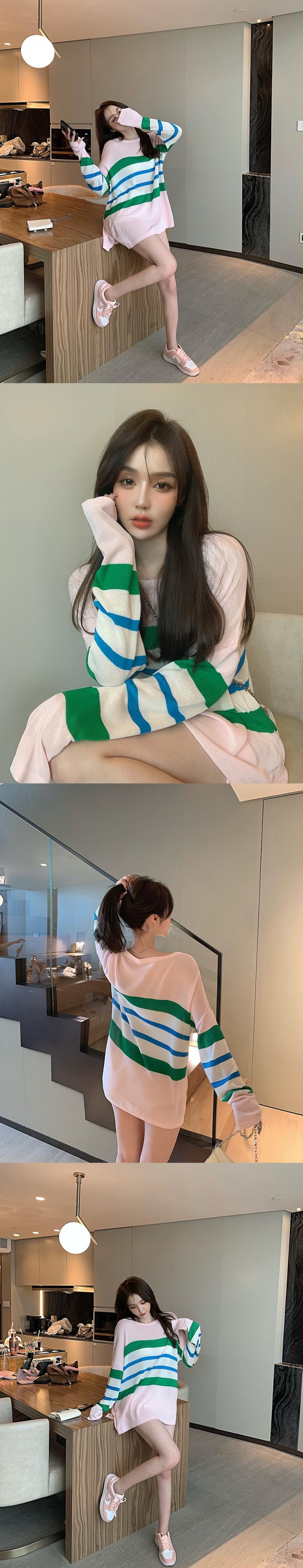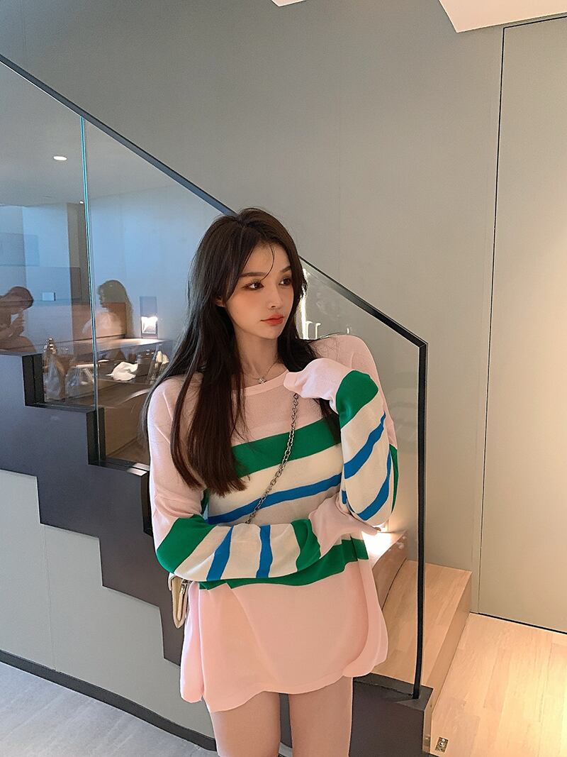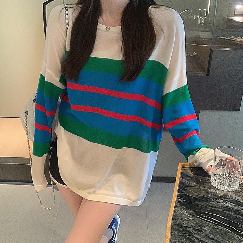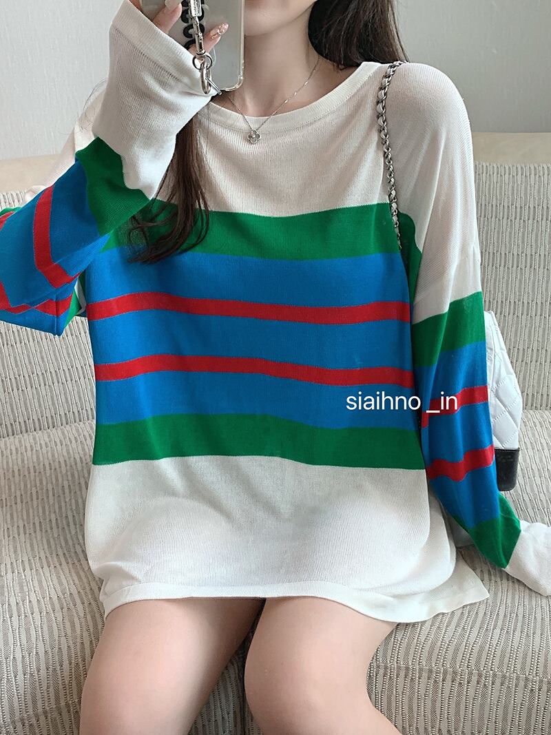 カラーセーター オータム薄手ブラウス ラウンドネックカジュアルトップス ロング 秋物 Oネック ガールズファッション22084596612