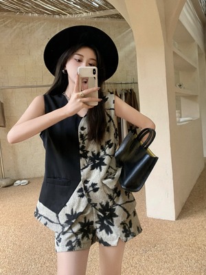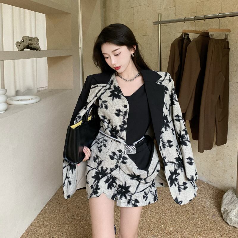 プリントジャケット オータムハイウェストウェストショーツ レッド ストリート 秋物 ブルマー ガールズファッション76630624490