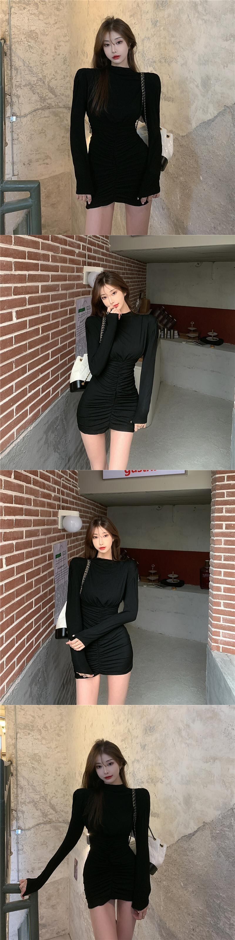 スタンダードカラーロングドレス オータムスタイルプリーツウェストスカート レトロ 長袖 秋物 ガールズファッション64925126353