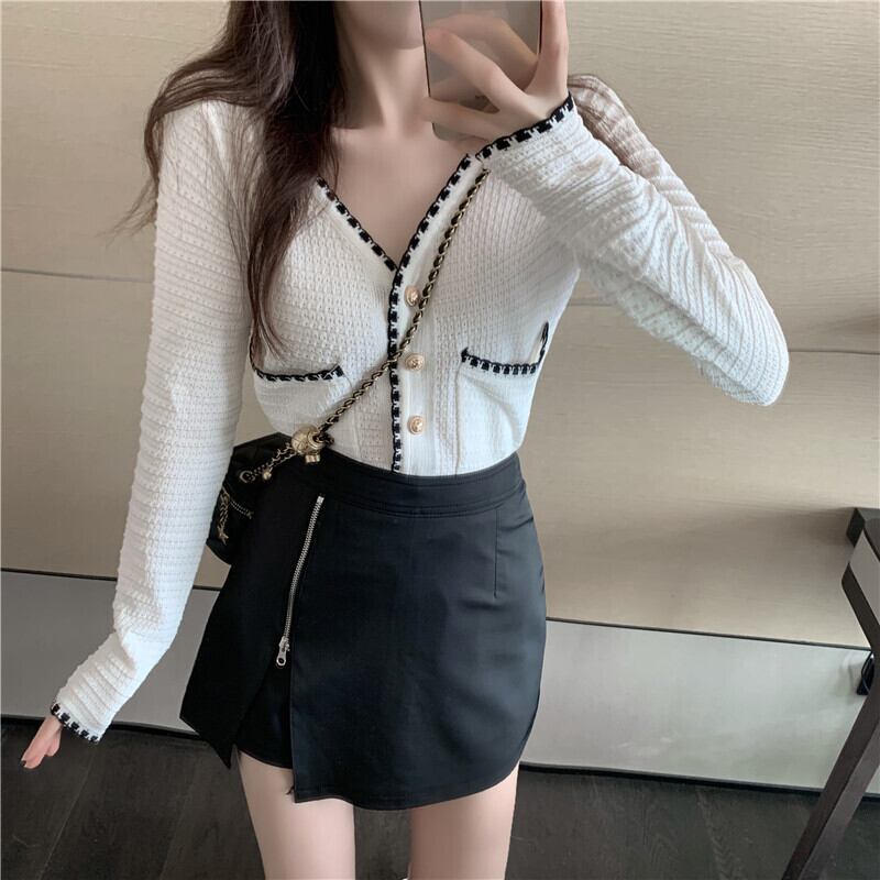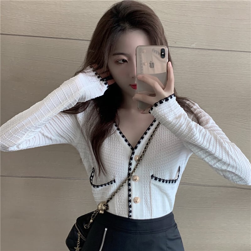 オータムVネックカラーニットセーター ジャケット レディース ロング 秋物 ガールズファッション47754653957
