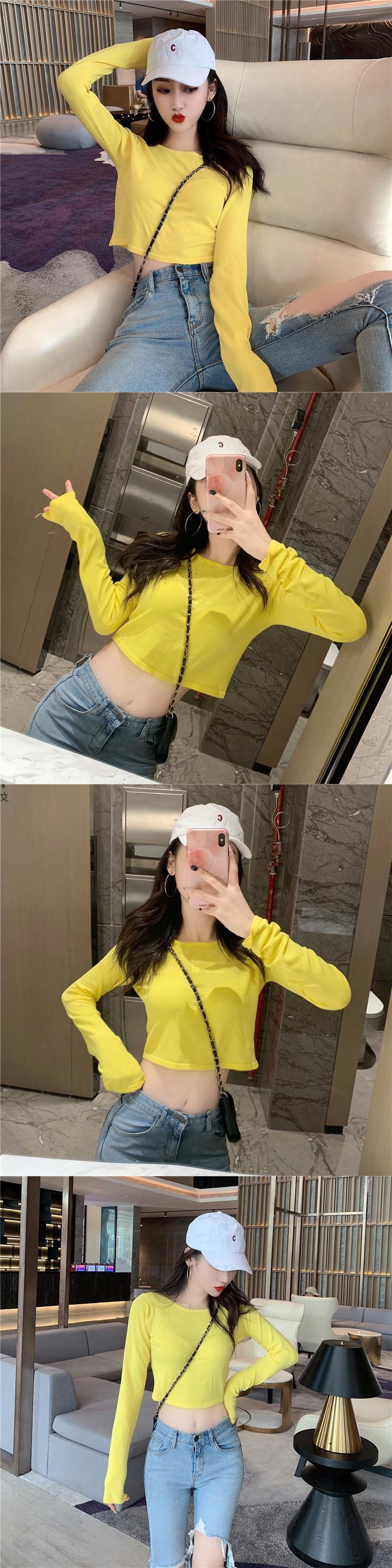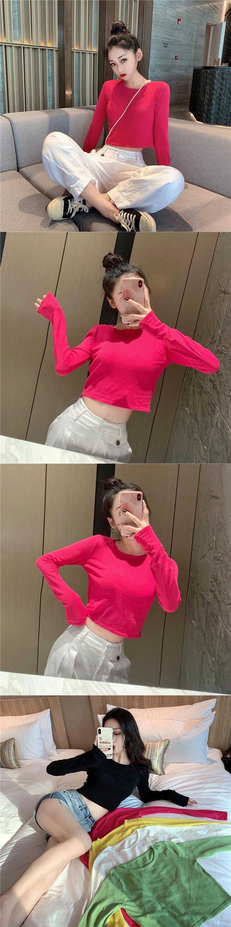 オータムソリッド カラーショートシャツ トップス Tシャツ ロング 秋物 ソリッドカラー ガールズファッション19938142639