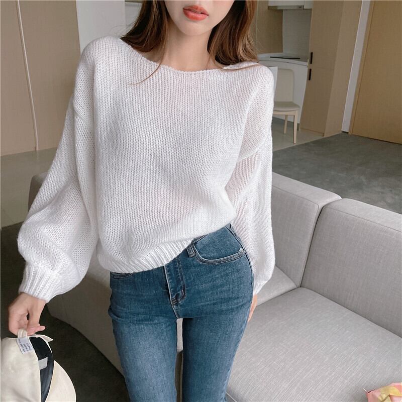 ルーズセーター ニットオータムカジュアルホワイトトップス 秋物 ガールズファッション7376533429