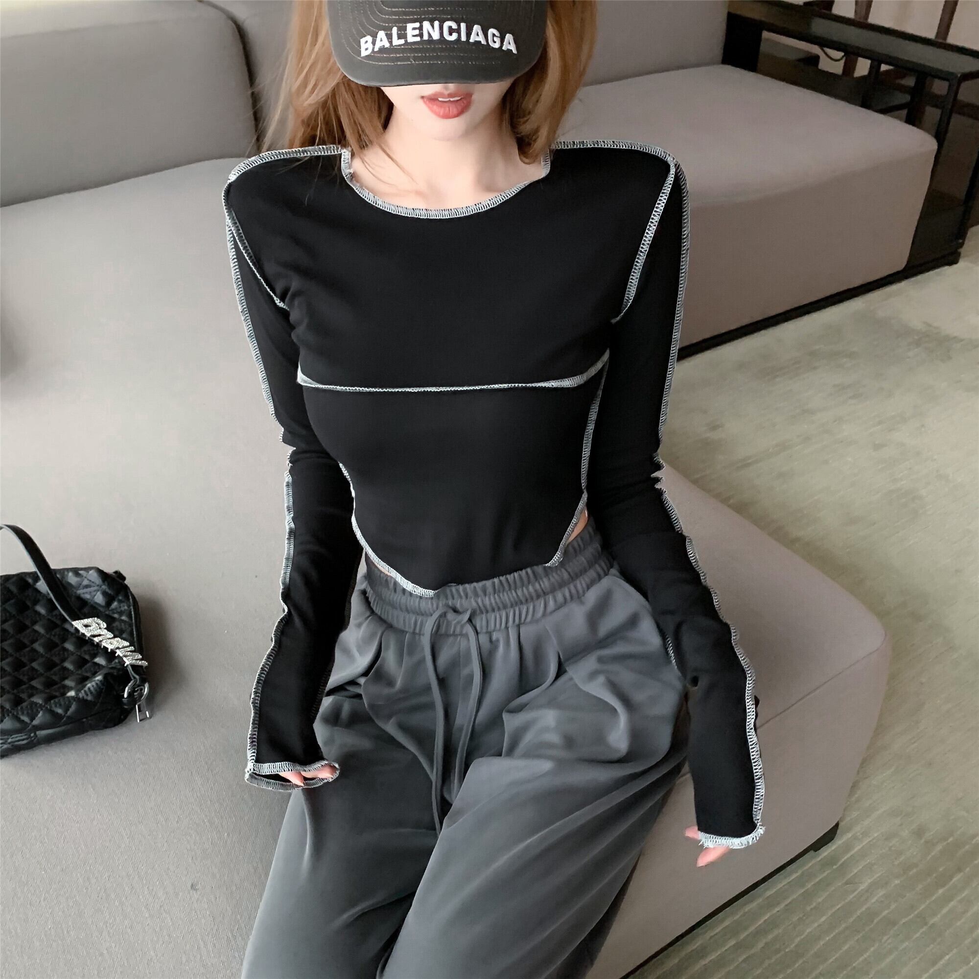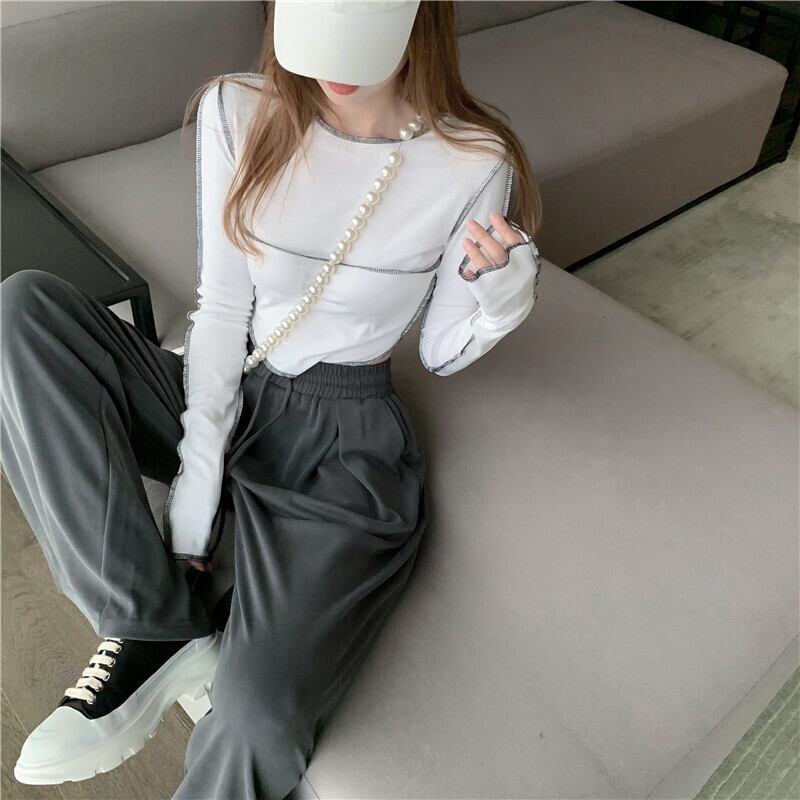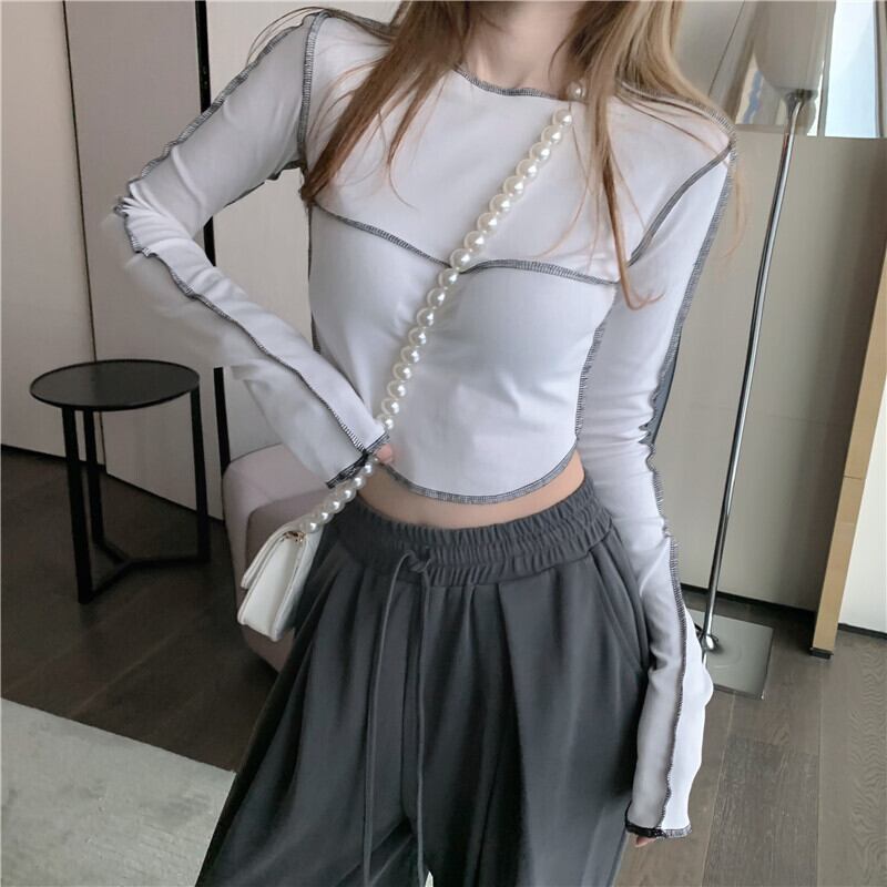 ショートトップス オータムシャツ Tシャツ ロング 大人ガーリー スウィート キュート カジュアル 秋物 ステッチ ガールズファッション15549135903