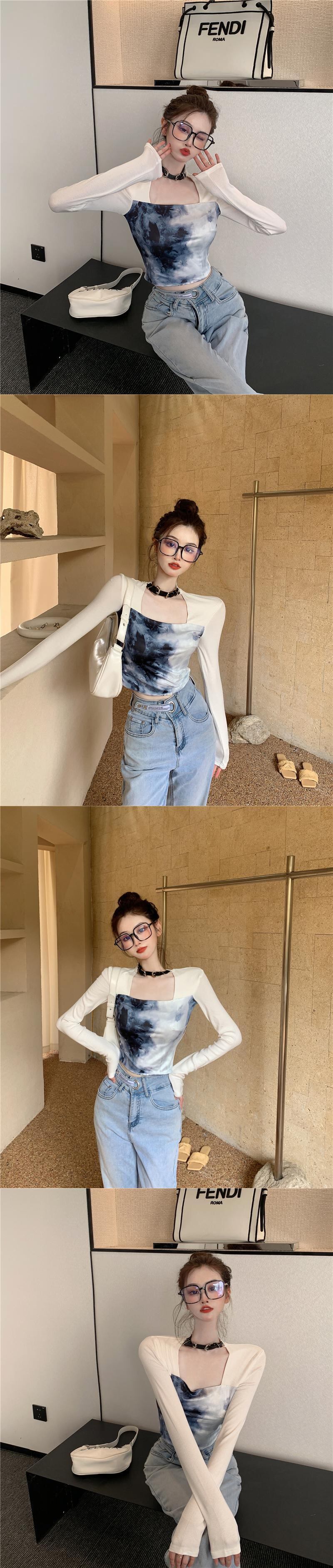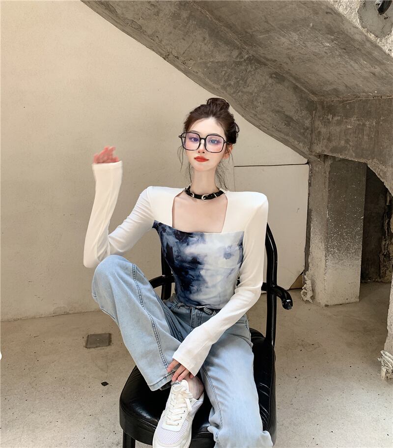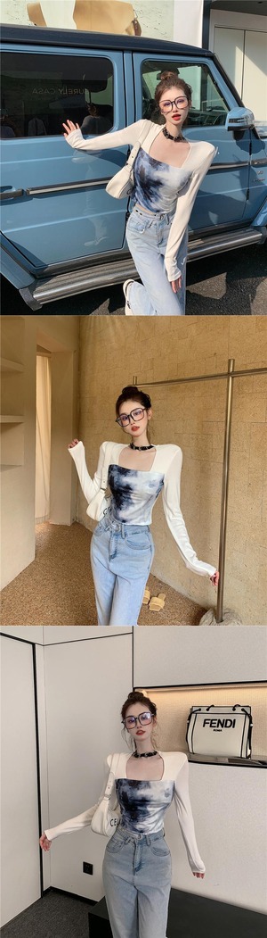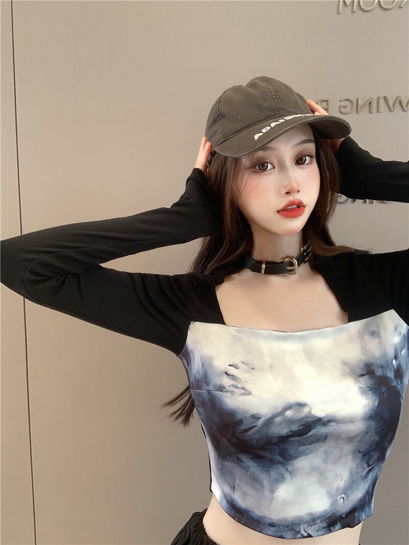 プリントショートトップス オータム薄手Tシャツ ロング 大人ガーリー スウィート キュート カジュアル 秋物 ステッチ ガールズファッション73523371373