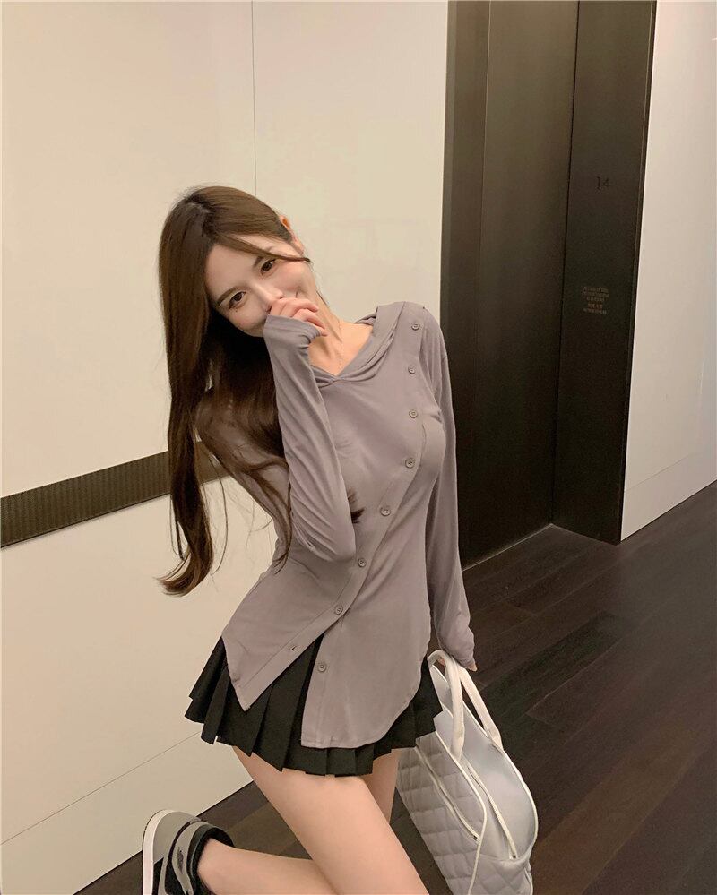 スリットカジュアルフードトップス オータムウェストTシャツ ロング 大人ガーリー スウィート キュート 秋物 ガールズファッション51428877993