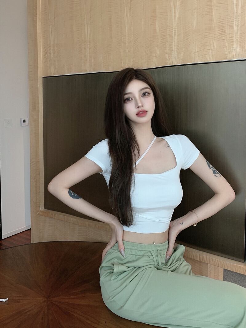 バンドショートTシャツ オータムトップス 秋物 ピュア ガールズファッション77885726890
