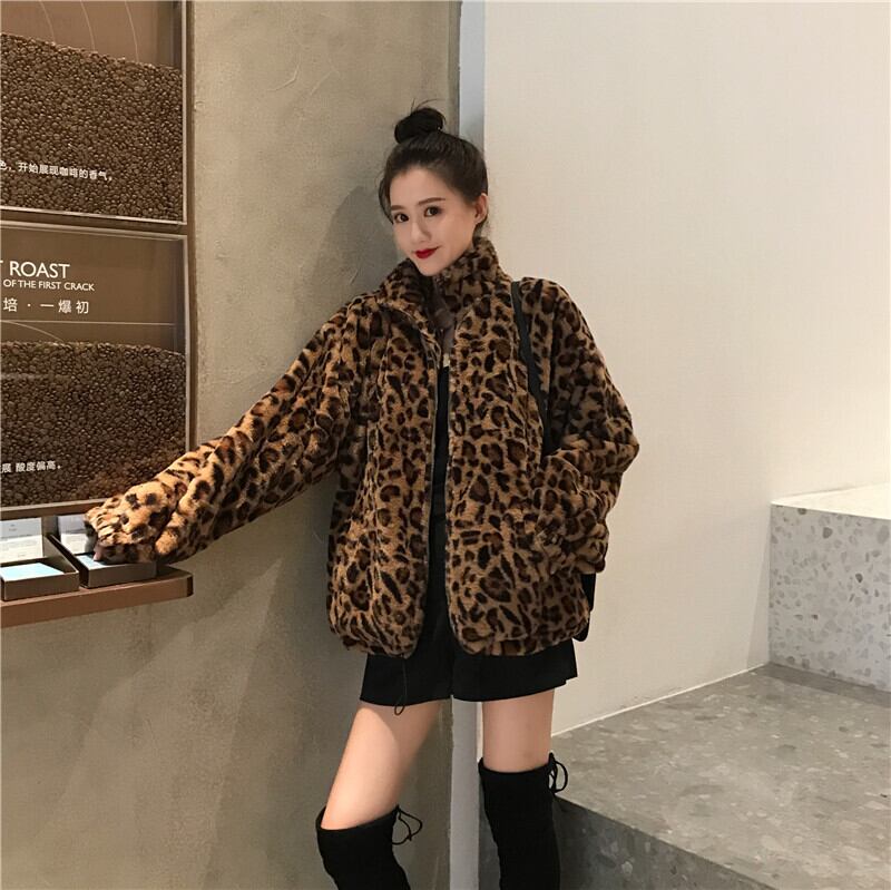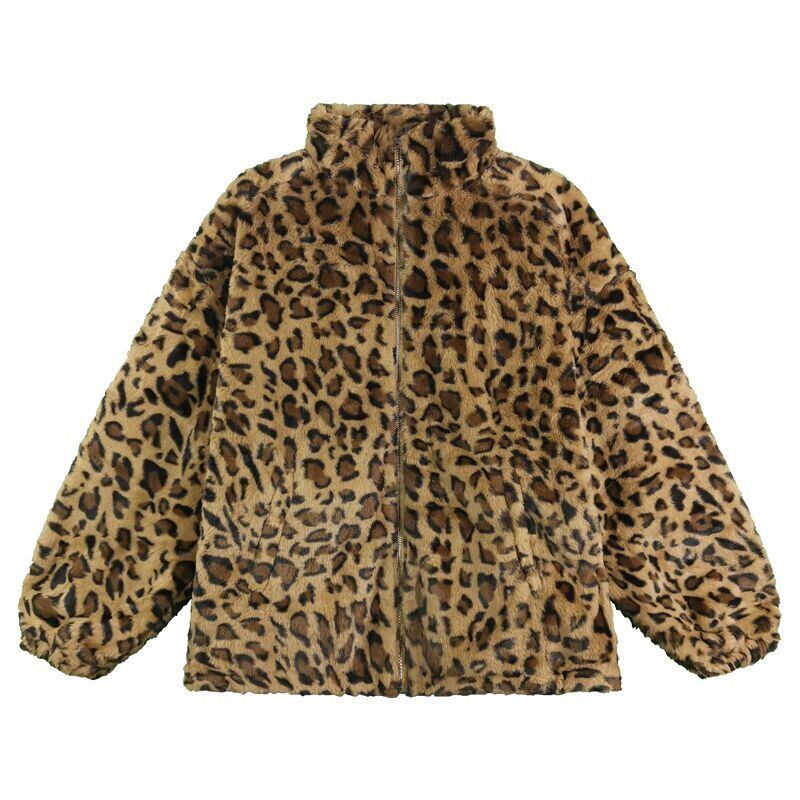 オータムスタイルレオパードプリント柄カラージッパールーズ薄手コート ジャケット 秋物 ガールズファッション90779440901