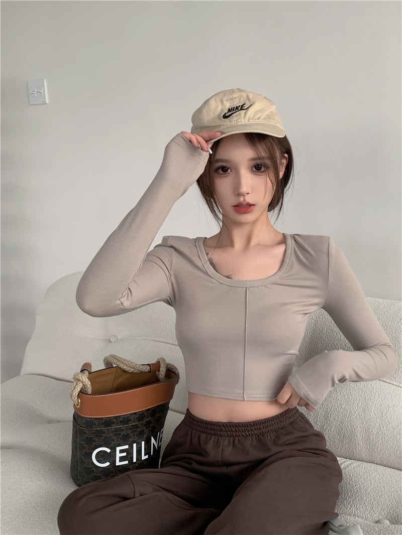 薄手Tシャツ オータムレッドショートトップス ロング 秋物 ガールズファッション55280276370