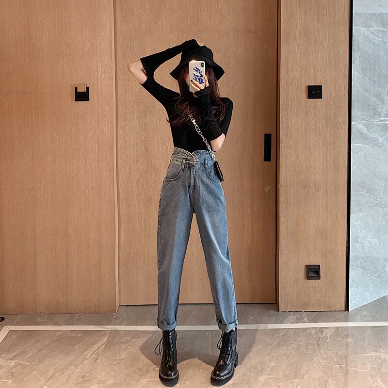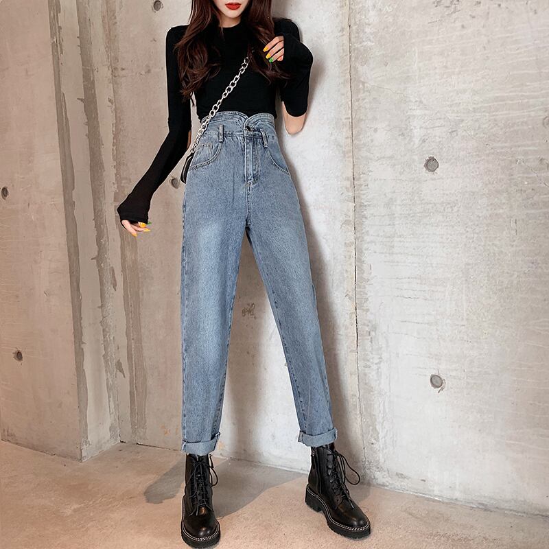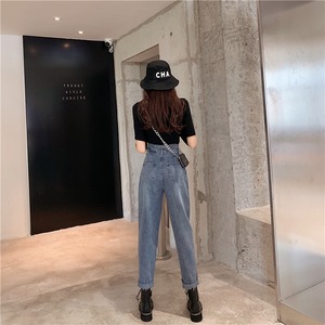 オータムスタンダードハイウェストジーンズ ルーズ薄手 レトロ 秋物 ガールズファッション74652210403