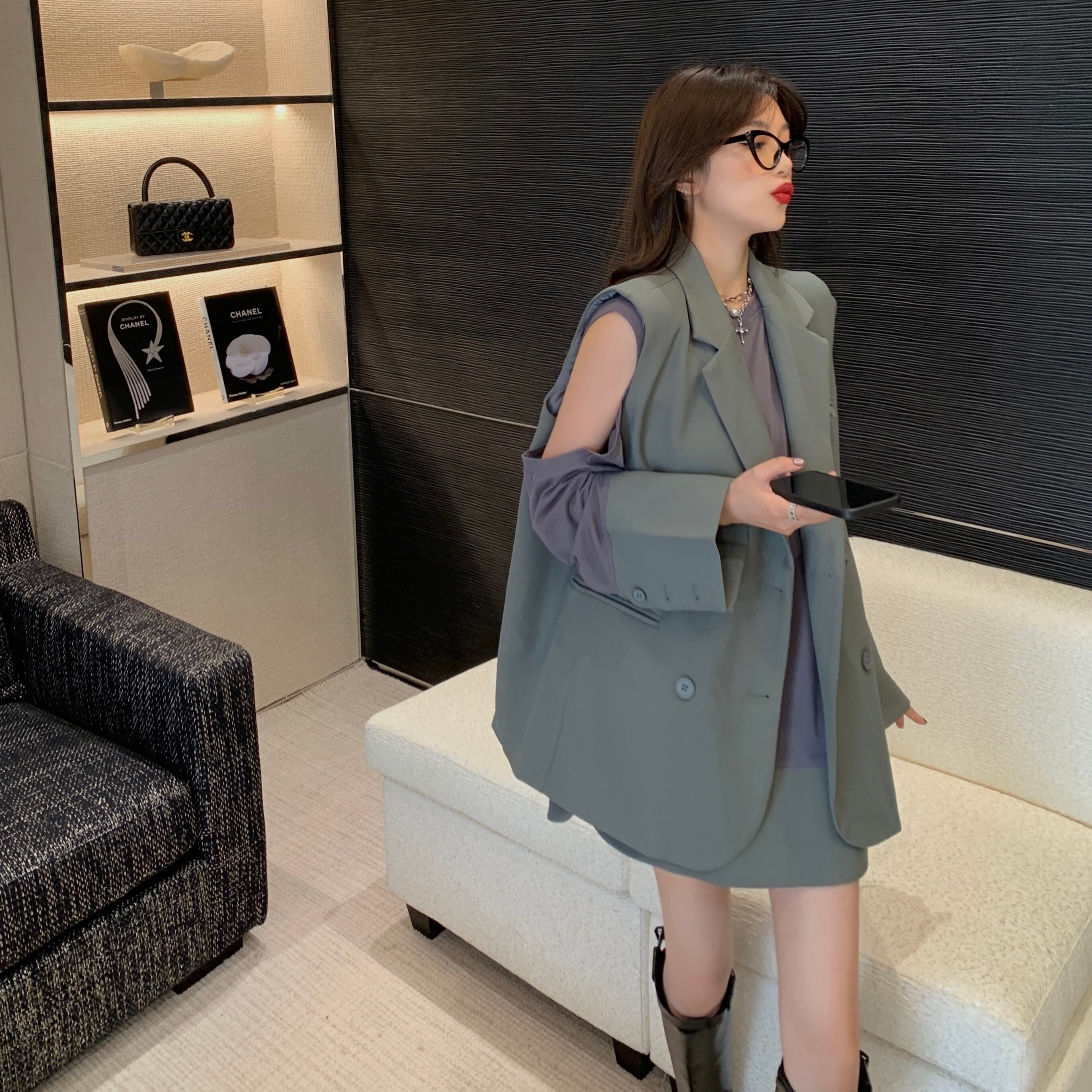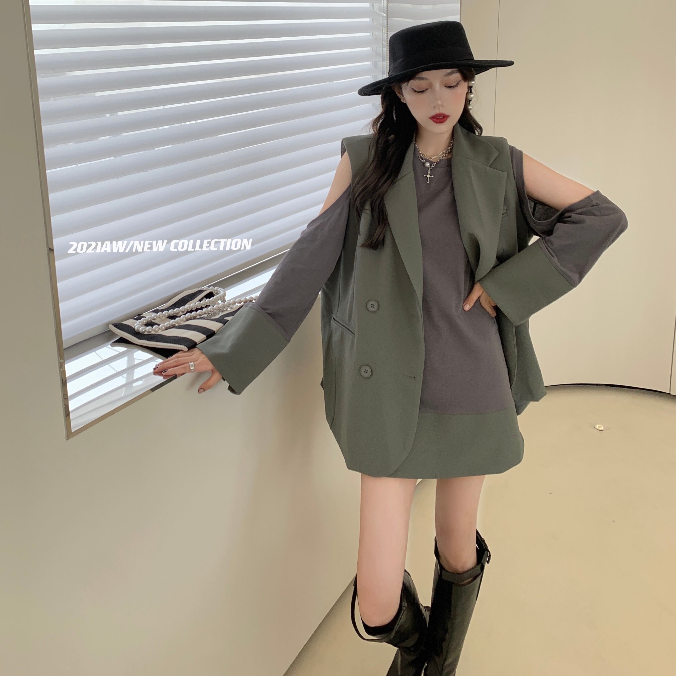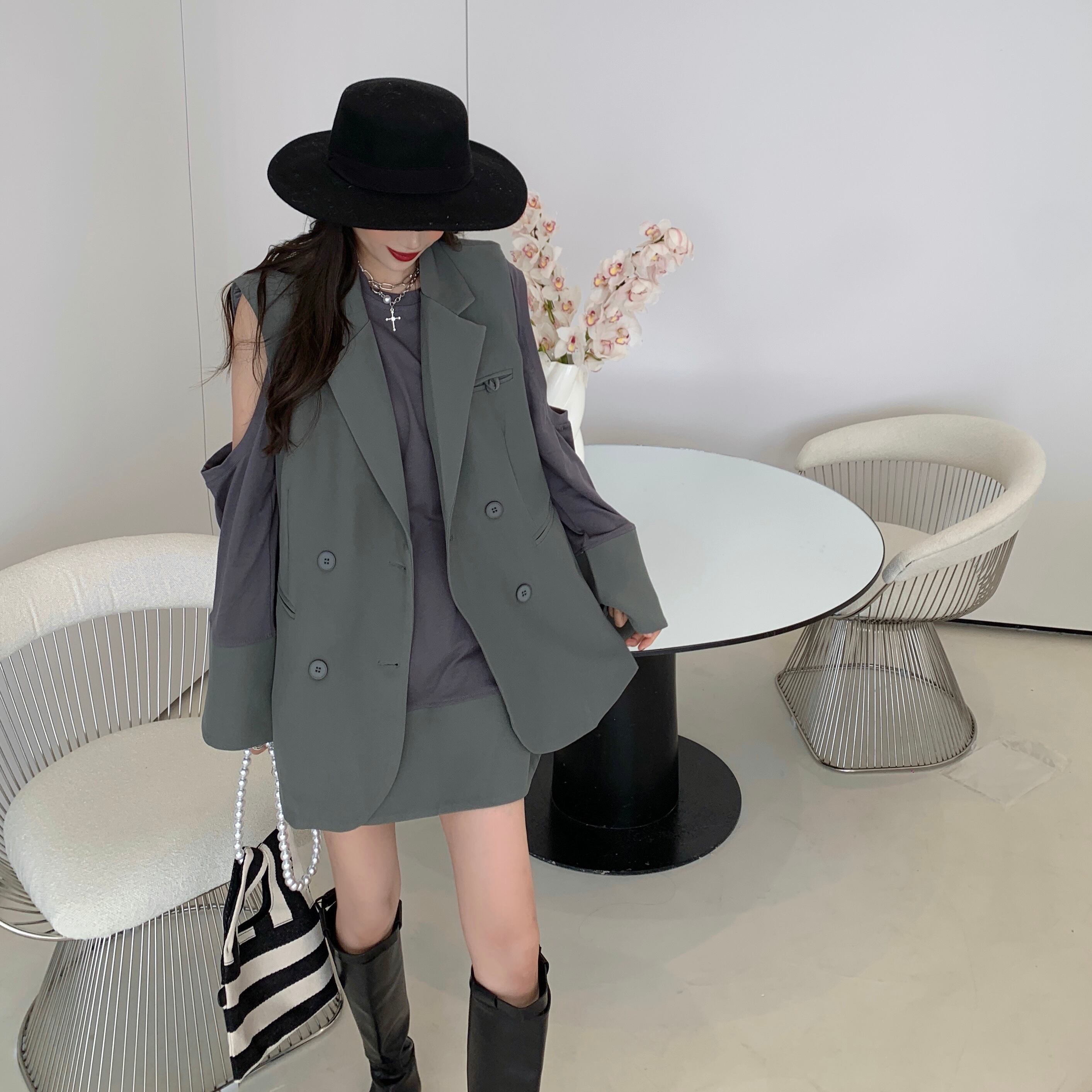 色:黒いTシャツ,グレーのTシャツ,グレーグリーンベスト,黒のベスト