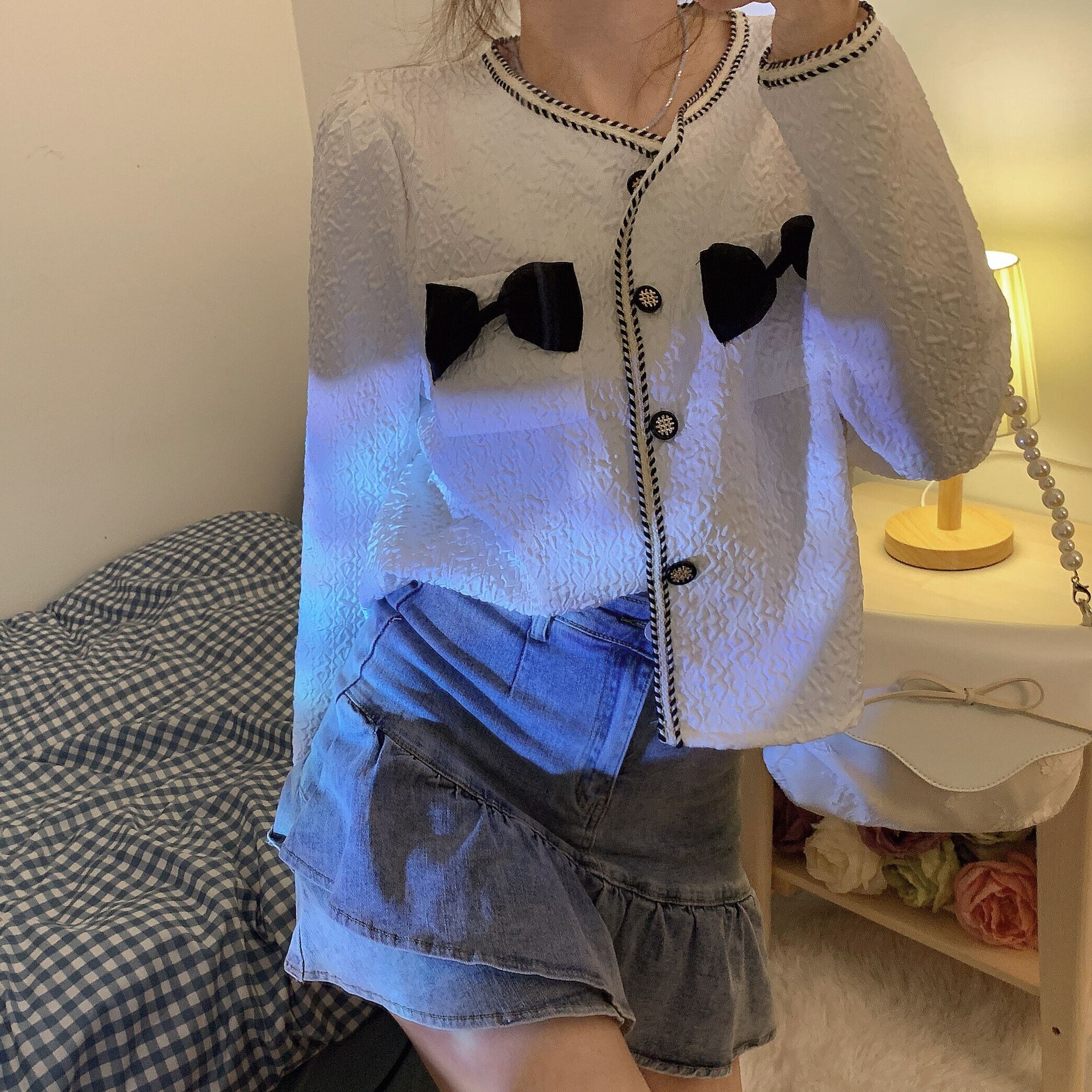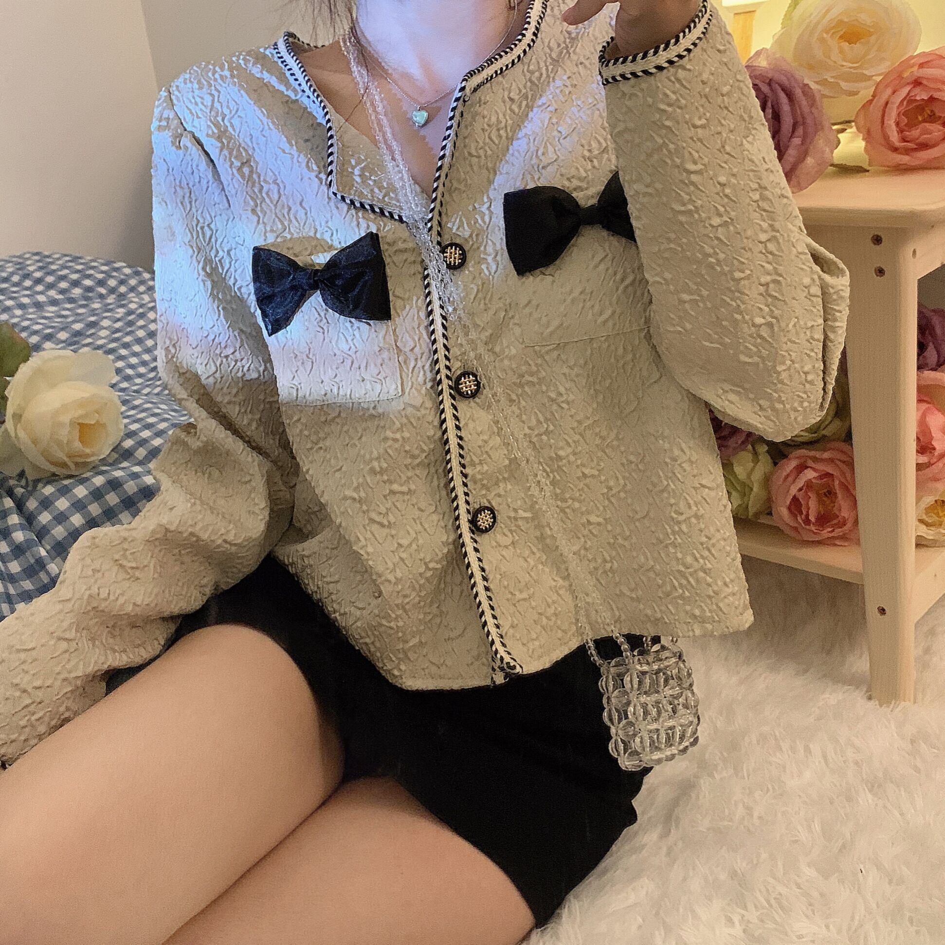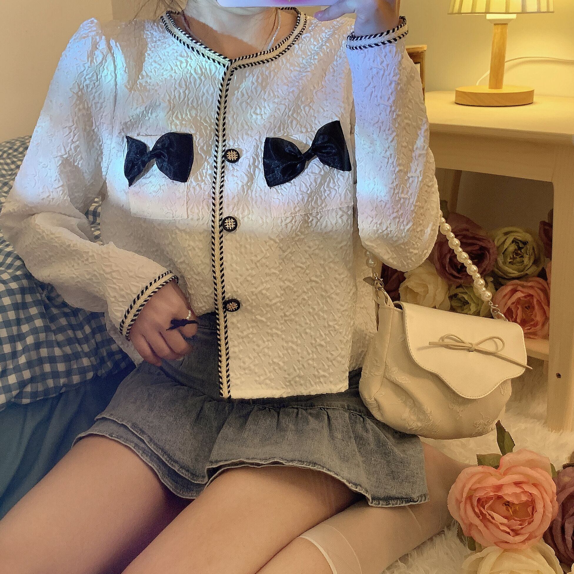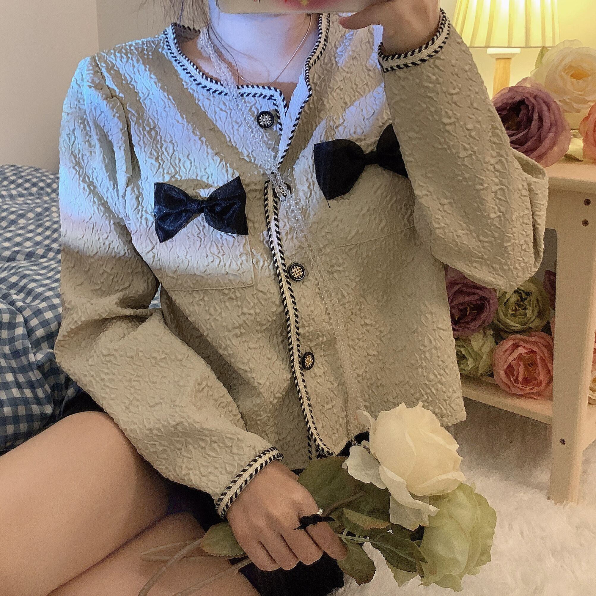リボンスタンダードショートジャケット オータムルーズカーディガンスタイル レトロ 大人ガーリー スウィート キュート カジュアル 秋物 ガールズファッション41335447689