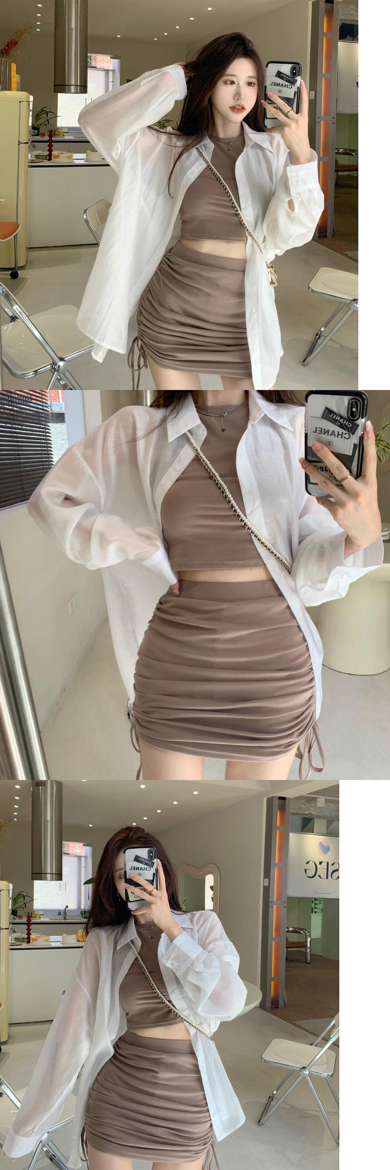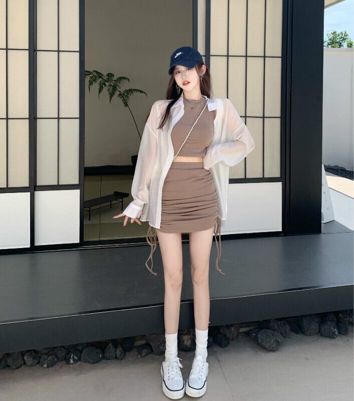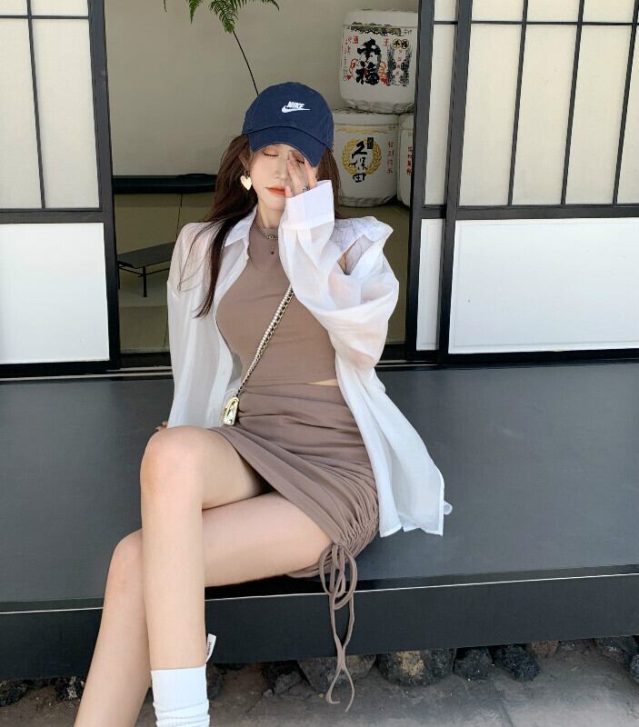 薄手ホルターシャツ ショートノースリーブギャザースカート サマー 半袖 ハーフスリーブ ストリート 夏物 ガールズファッション4716552551