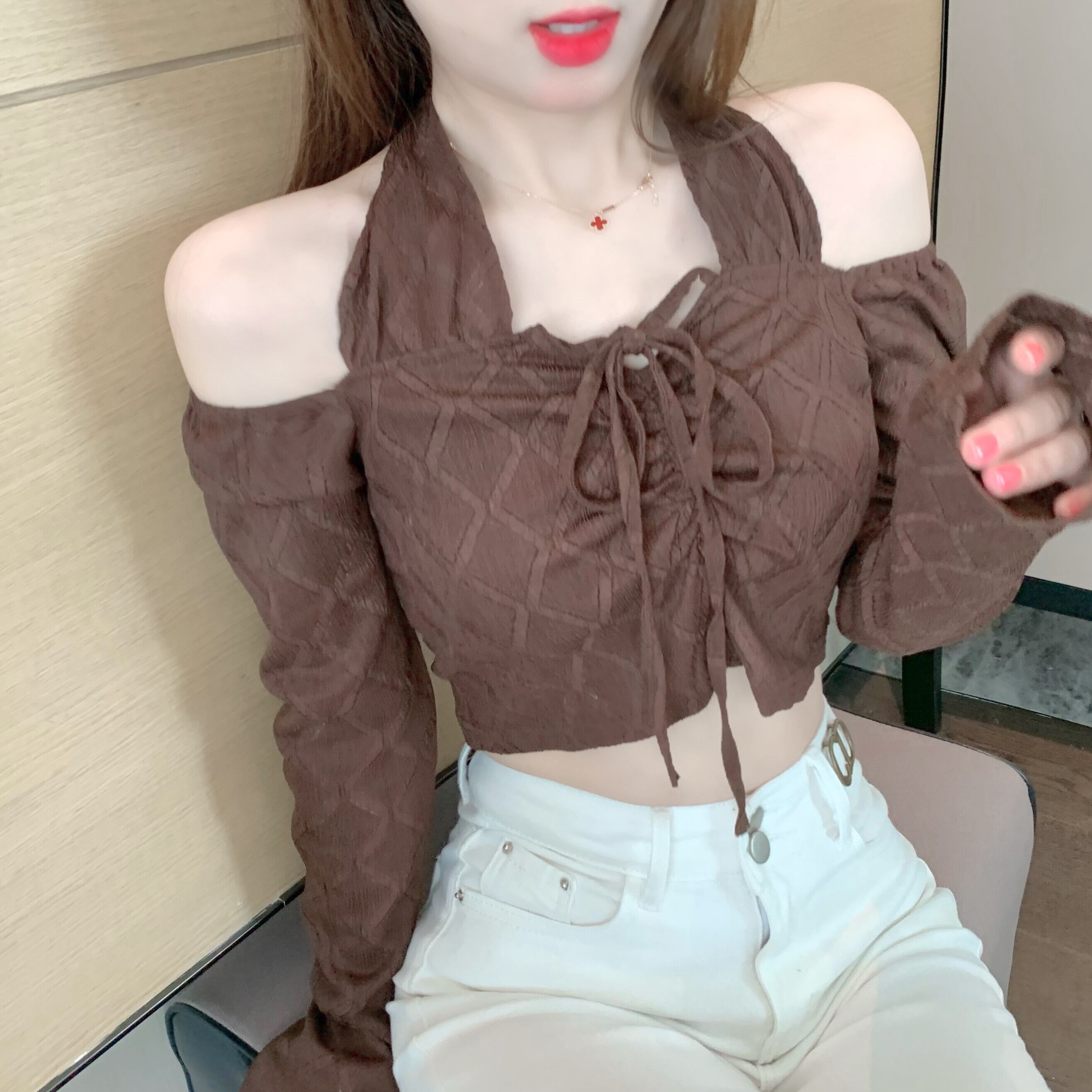 ホルターストラップレスショートブラウス レディース ロング ガールズファッション21287384650