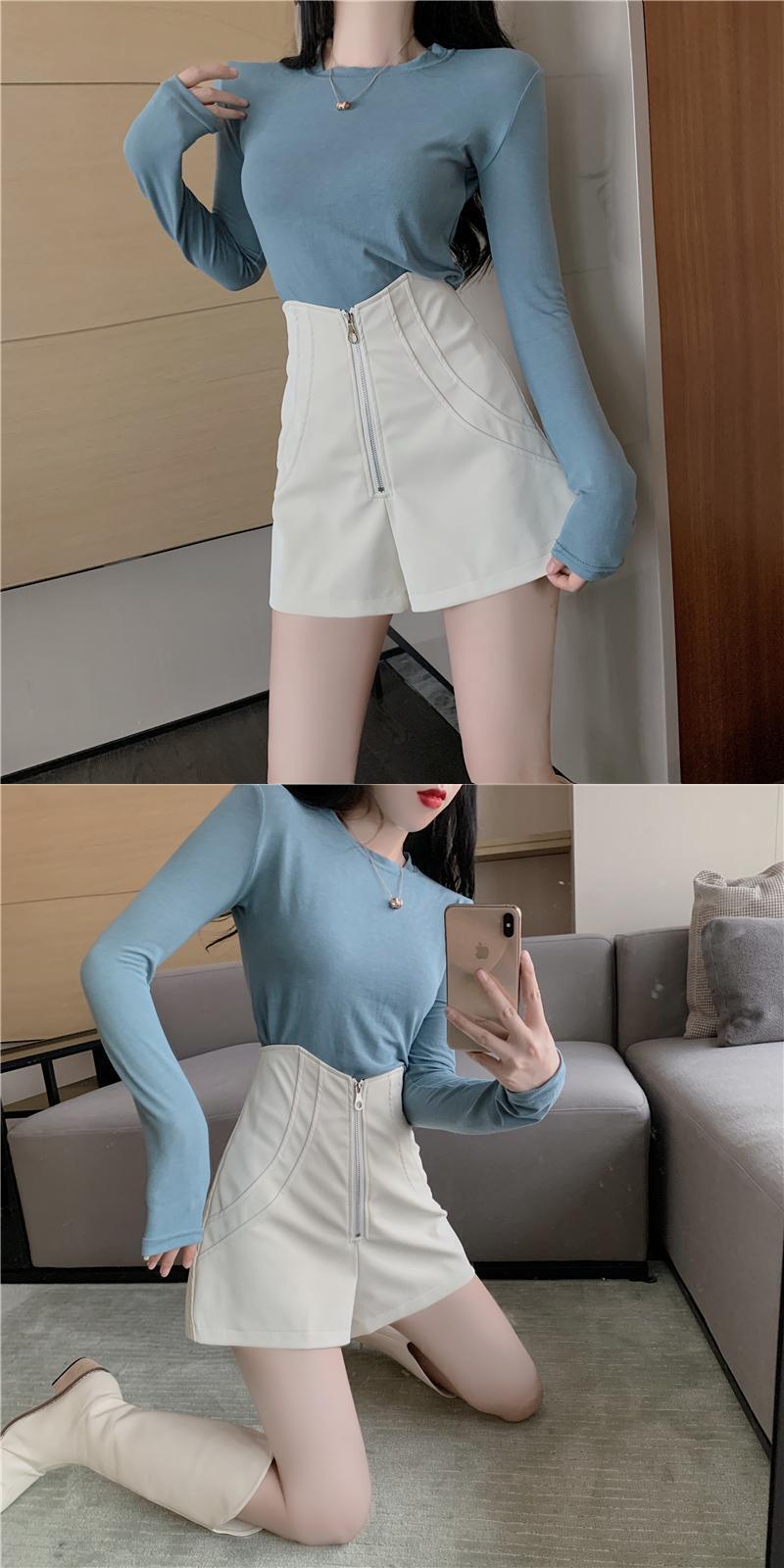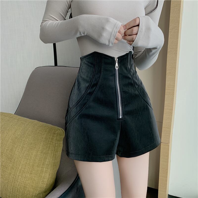 オータムスタイルハイウェストウェストジッパーレザーパンツ Aライン 秋物 ガールズファッション92177980248