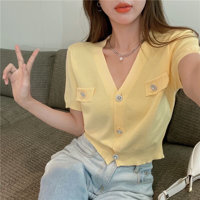 Vネックショートセーター トップス サマー薄手ホワイトカーディガン 大人ガーリー スウィート キュート カジュアル 夏物 ガールズファッション80373079752