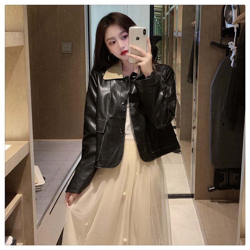 スタンダードカラーショートレザージャケット オータムカジュアル レトロ ストリート 大人ガーリー スウィート キュート 秋物 ガールズファッション57294299548