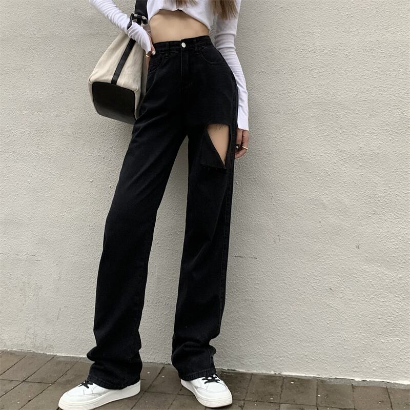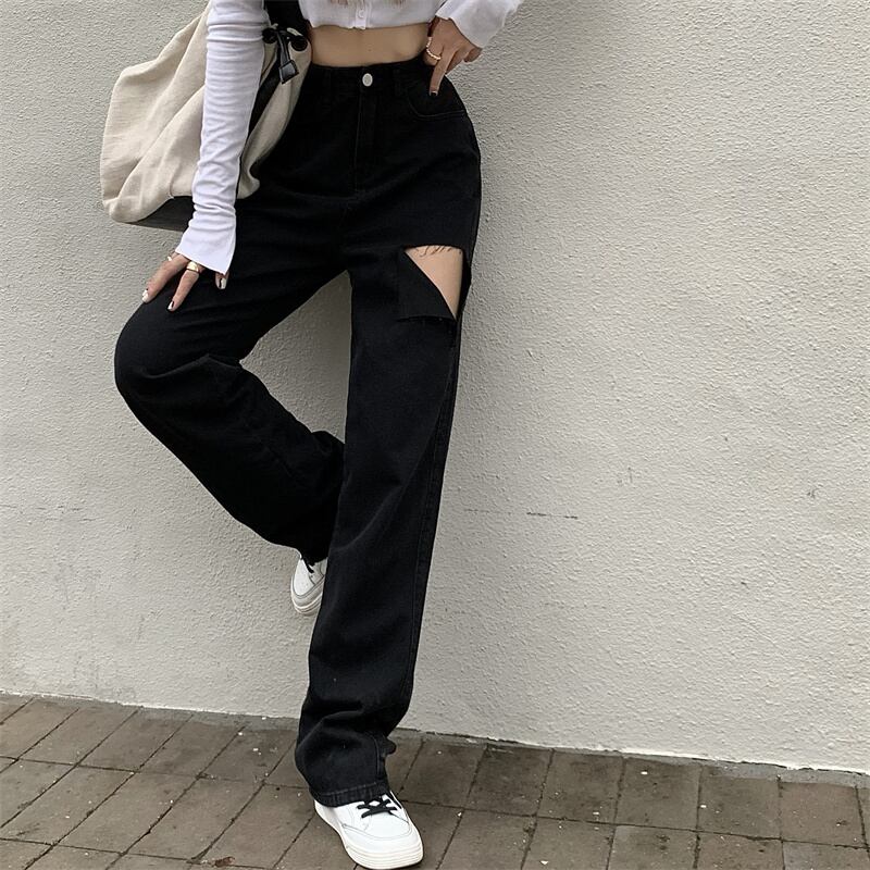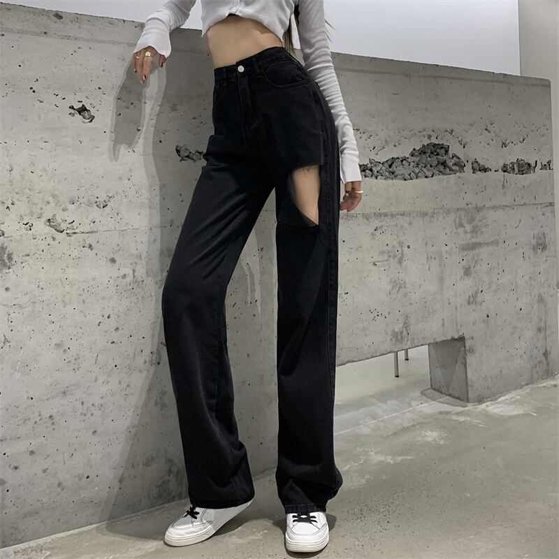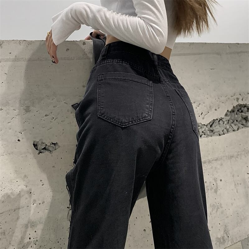 ブラックハイウェストジーンズ オータムルーズパンツ カジュアル 秋物 ガールズファッション96468717671