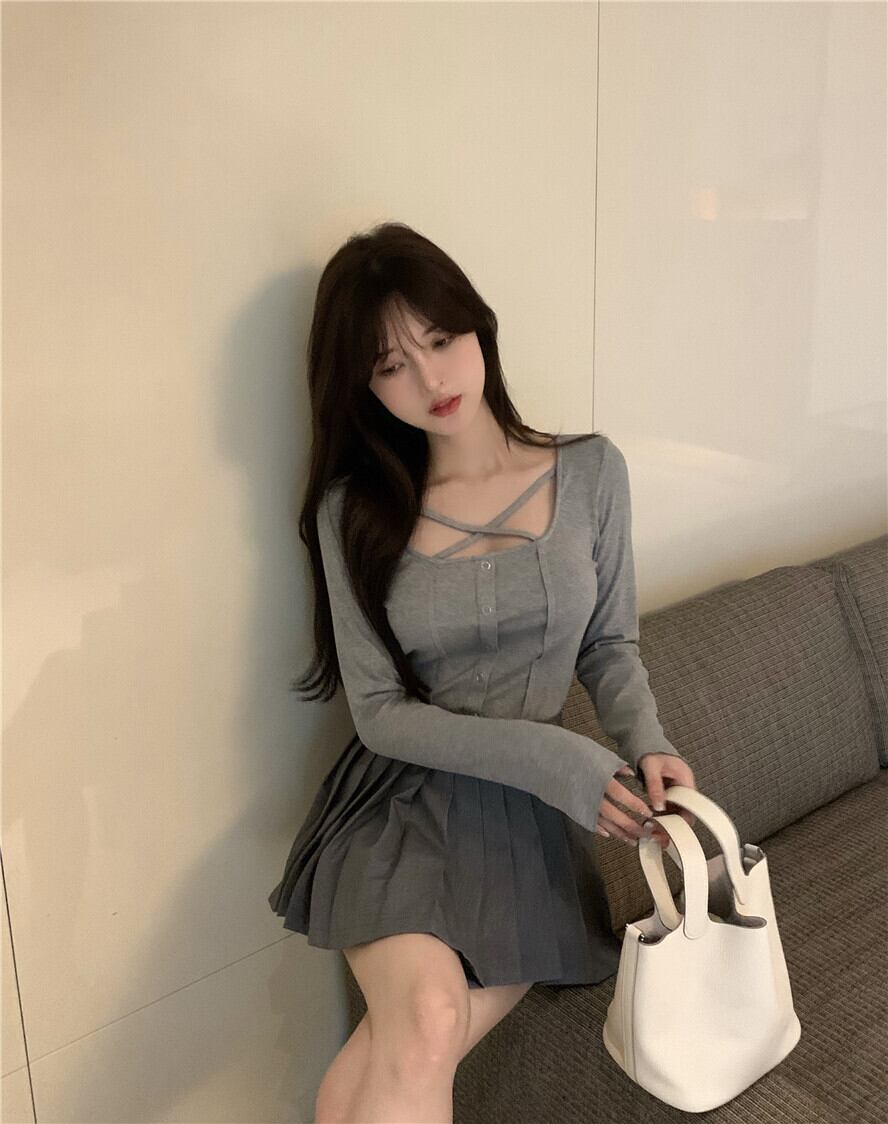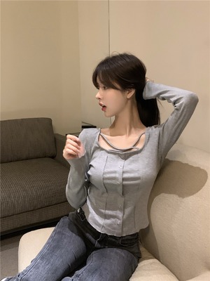 薄手トップス オータムグレーTシャツ ロング 秋物 ピュア ガールズファッション43171493387