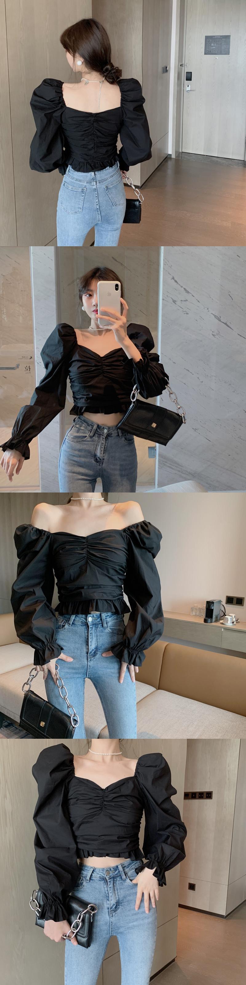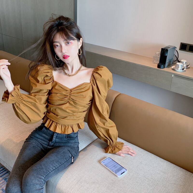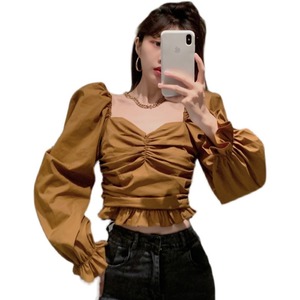 スタンダードシャツ スリーブカラー ランタンスリーブ レトロ スクウェア ガールズファッション48525479719