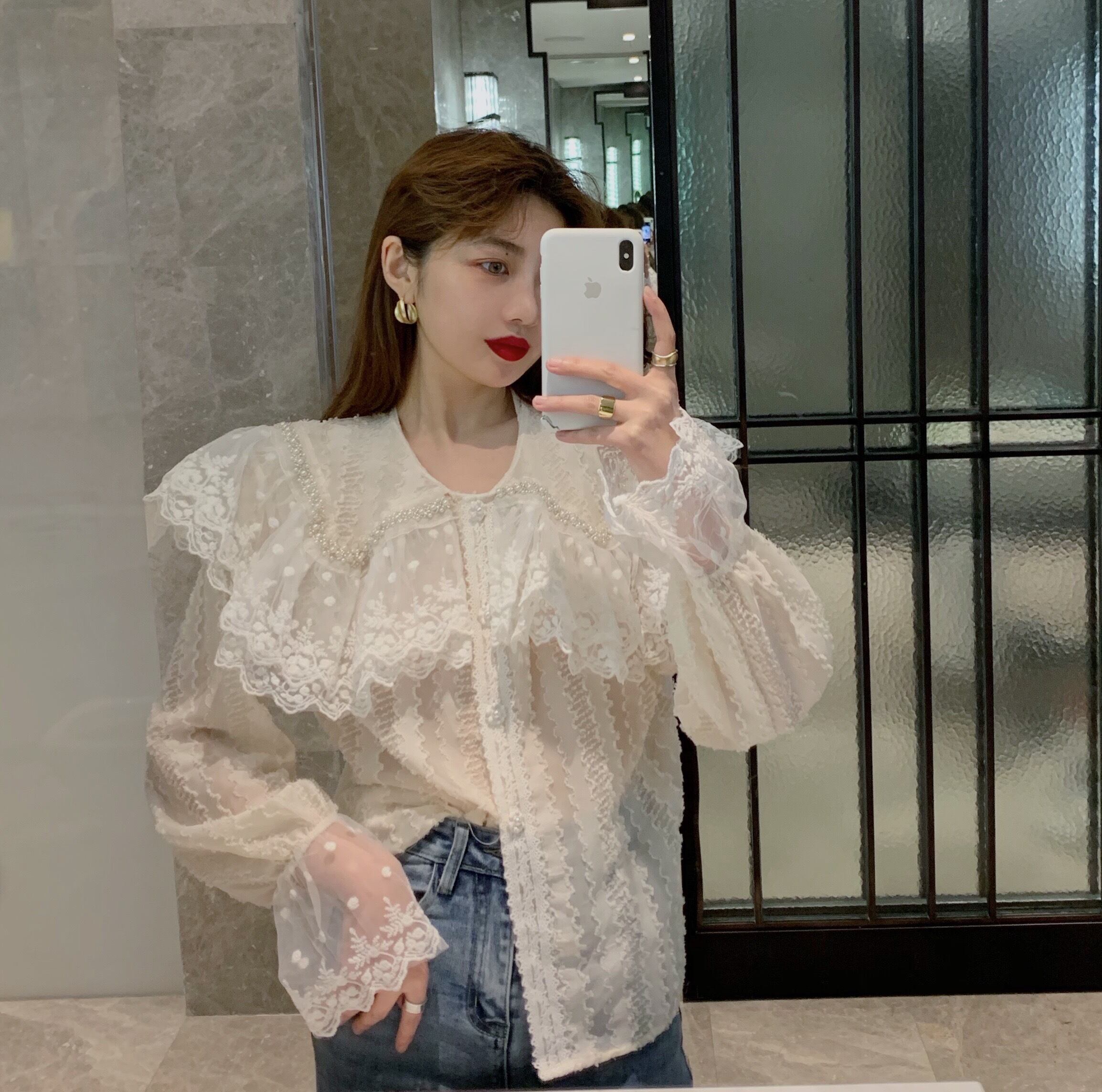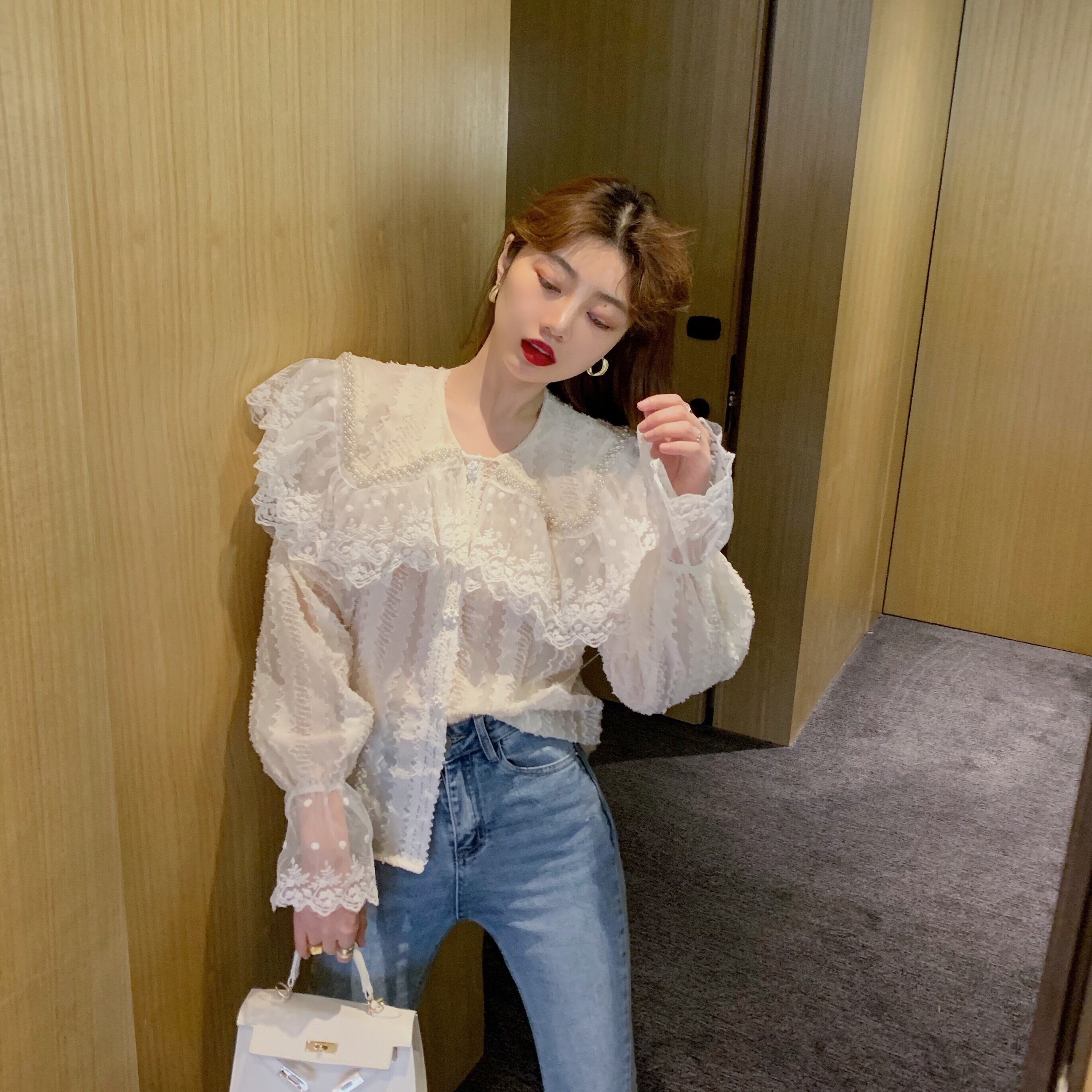 レースシャツ ブラウス オータムカラールーズ ロング 秋物 ガールズファッション53422030179