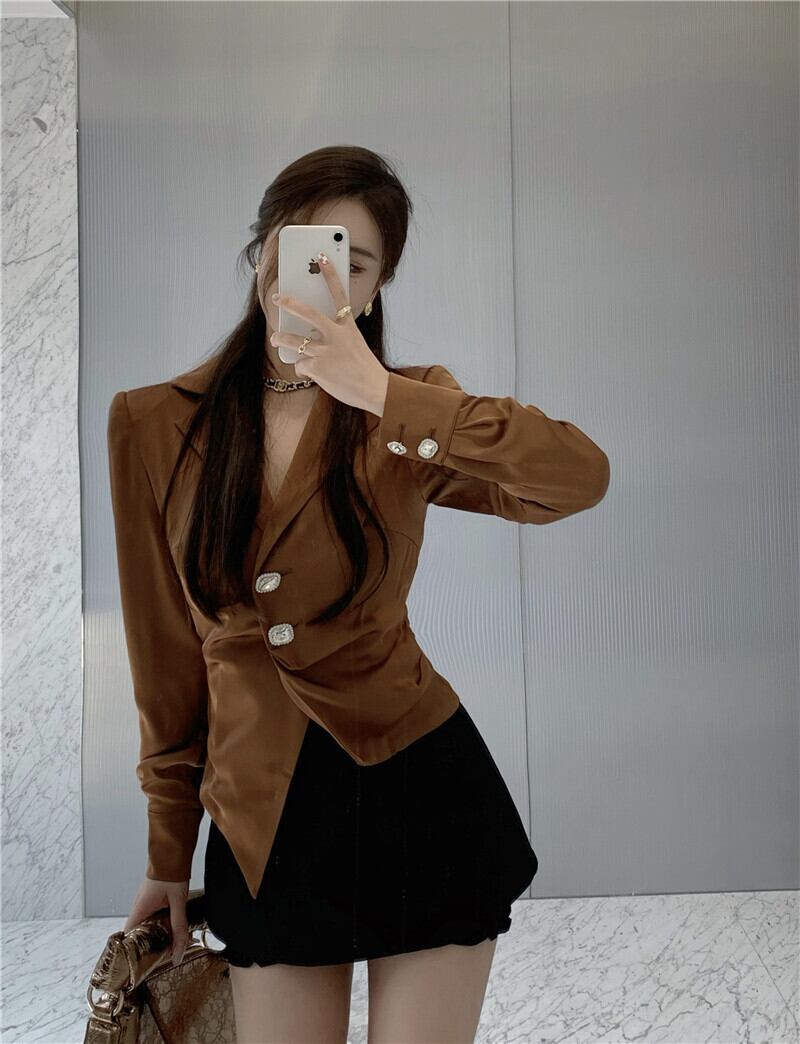 ウェストショートブラウス レディースオータムスタイル薄手シャツ ロング 秋物 ガールズファッション39722232540