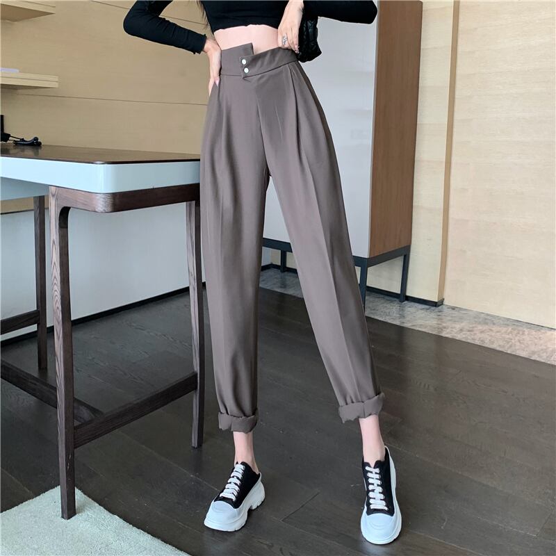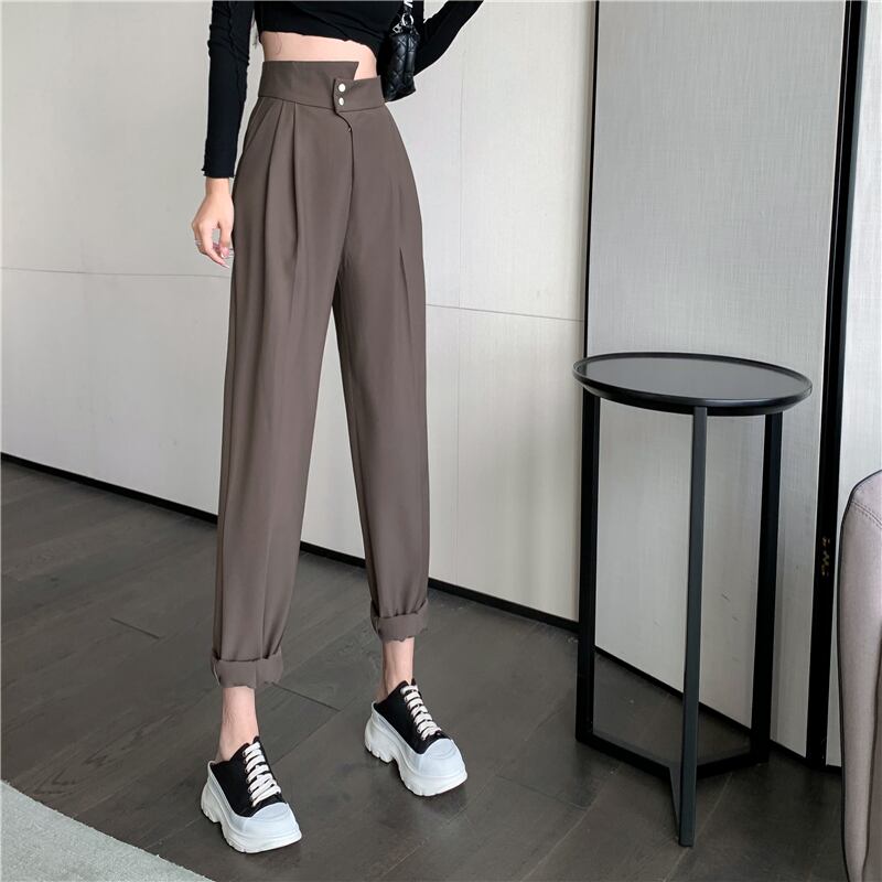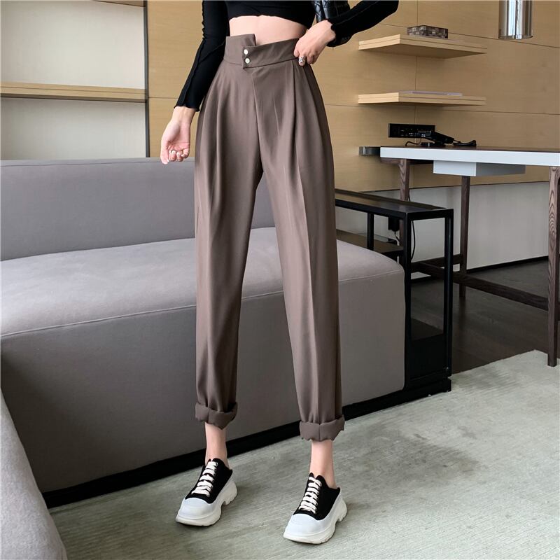 パンツ オータムカジュアルハイウェストウェストソリッド カラールーズスリム 秋物 ソリッドカラー ガールズファッション25491204