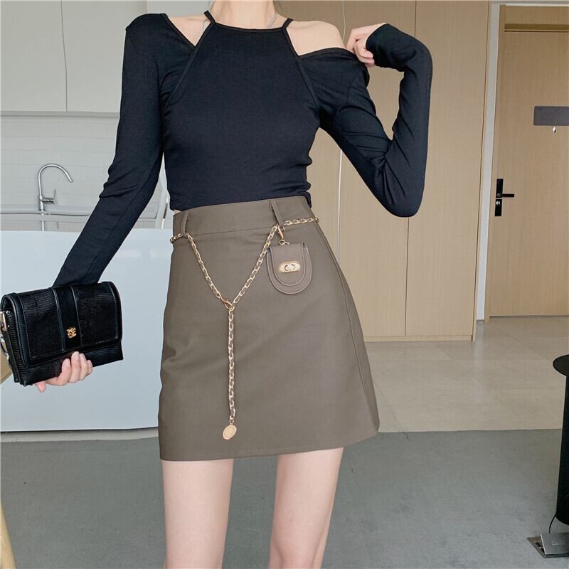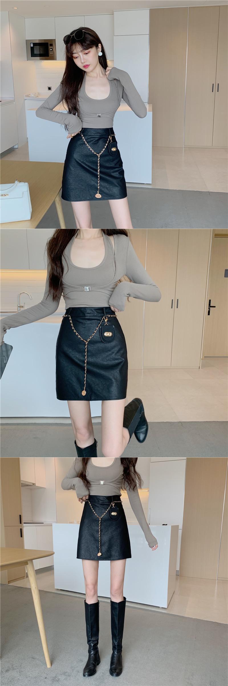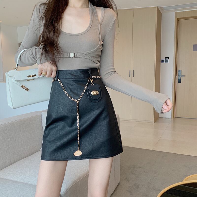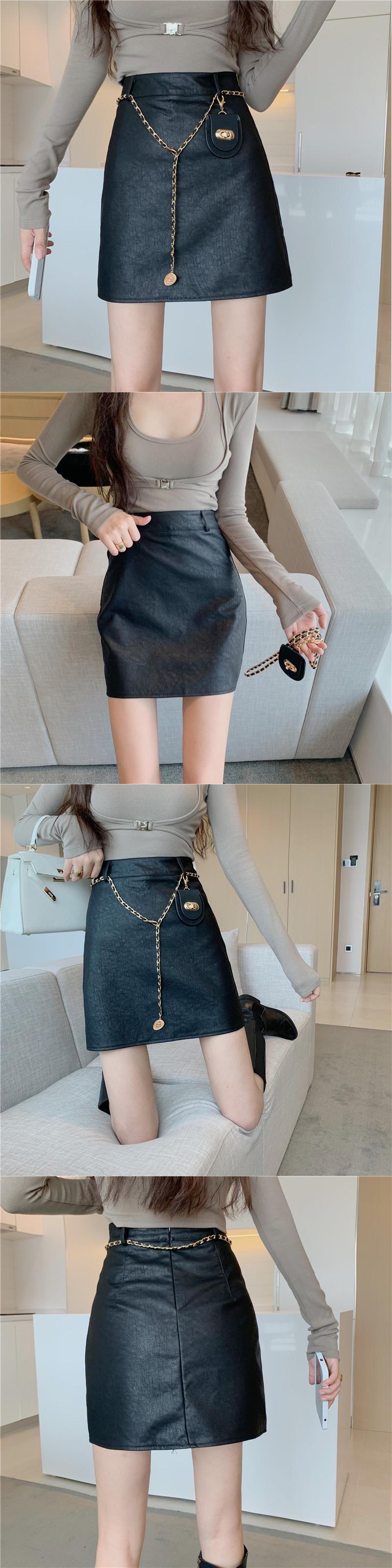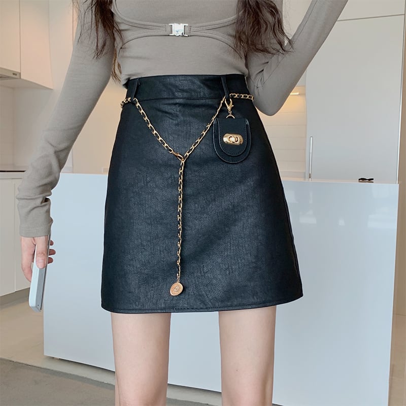 チェーン ベルト ハイウェストウェストレザースカート オータムAライン ストリート 大人ガーリー スウィート キュート カジュアル 秋物 ハーネス ガールズファッション7153491427