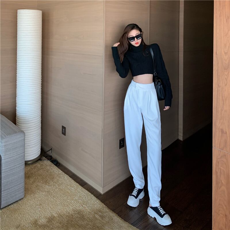 ホワイトカジュアルパンツ オータムストレッチハイウェストウェストレギンス ルーズオーバーオール エラスティック 伸縮 秋物 ガールズファッション90119671209