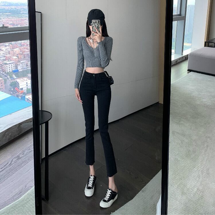 ブラックジーンズ レディースオータムスリムカジュアルパンツ 秋物 ガールズファッション43732342378