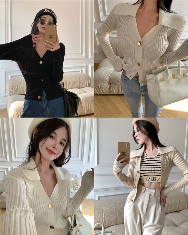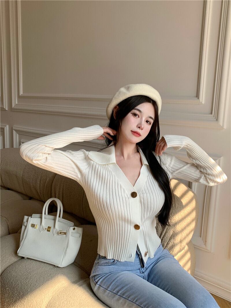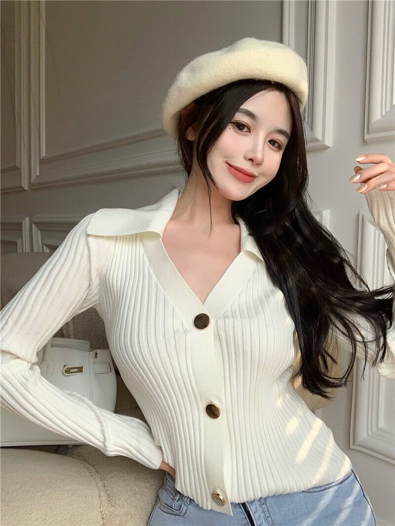 スタンダードホワイトセーター オータムスリムトップス ロング レトロ 秋物 ガールズファッション78588471467
