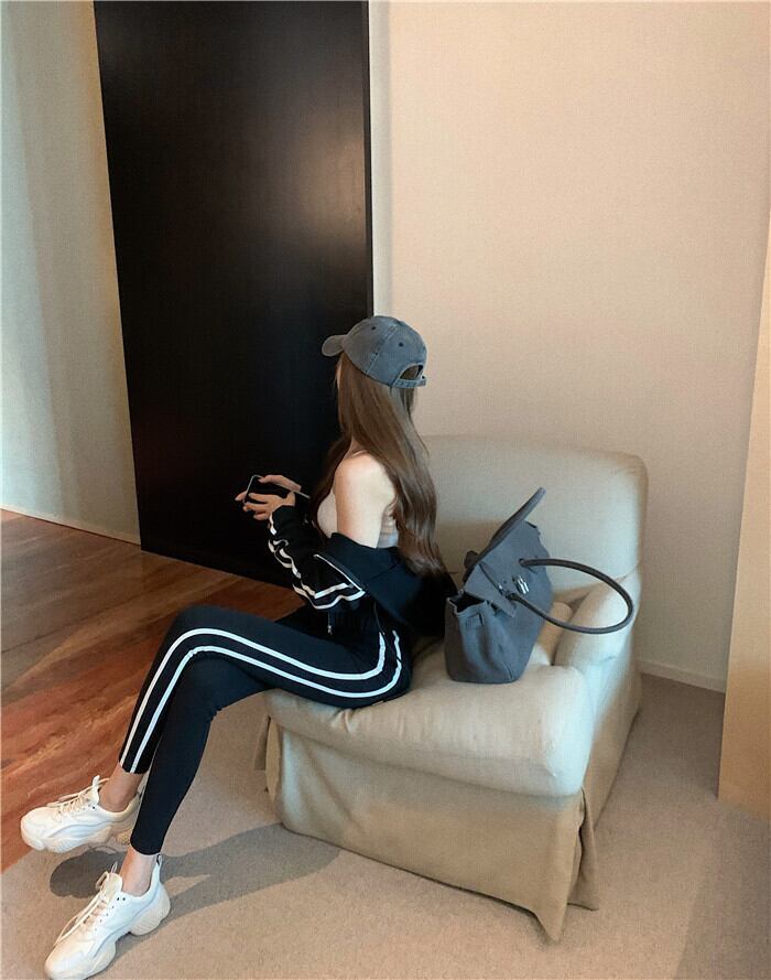 カジュアルレディースオータムルーズショートフードセーター コート ハイウェストウェストカラーストライプパンツ ストリート 秋物 ガールズファッション27793630284
