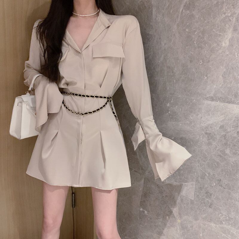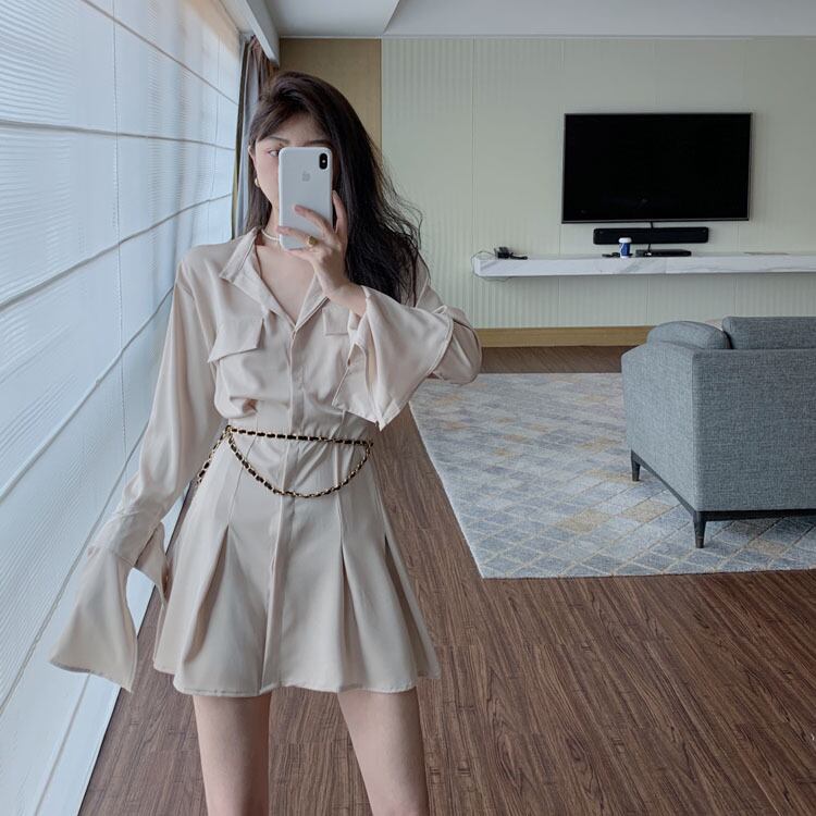 スタイルウェストシャツ ドレス サマーハイウェスト薄手Aラインスカート ロング 夏物 ガールズファッション86912896371